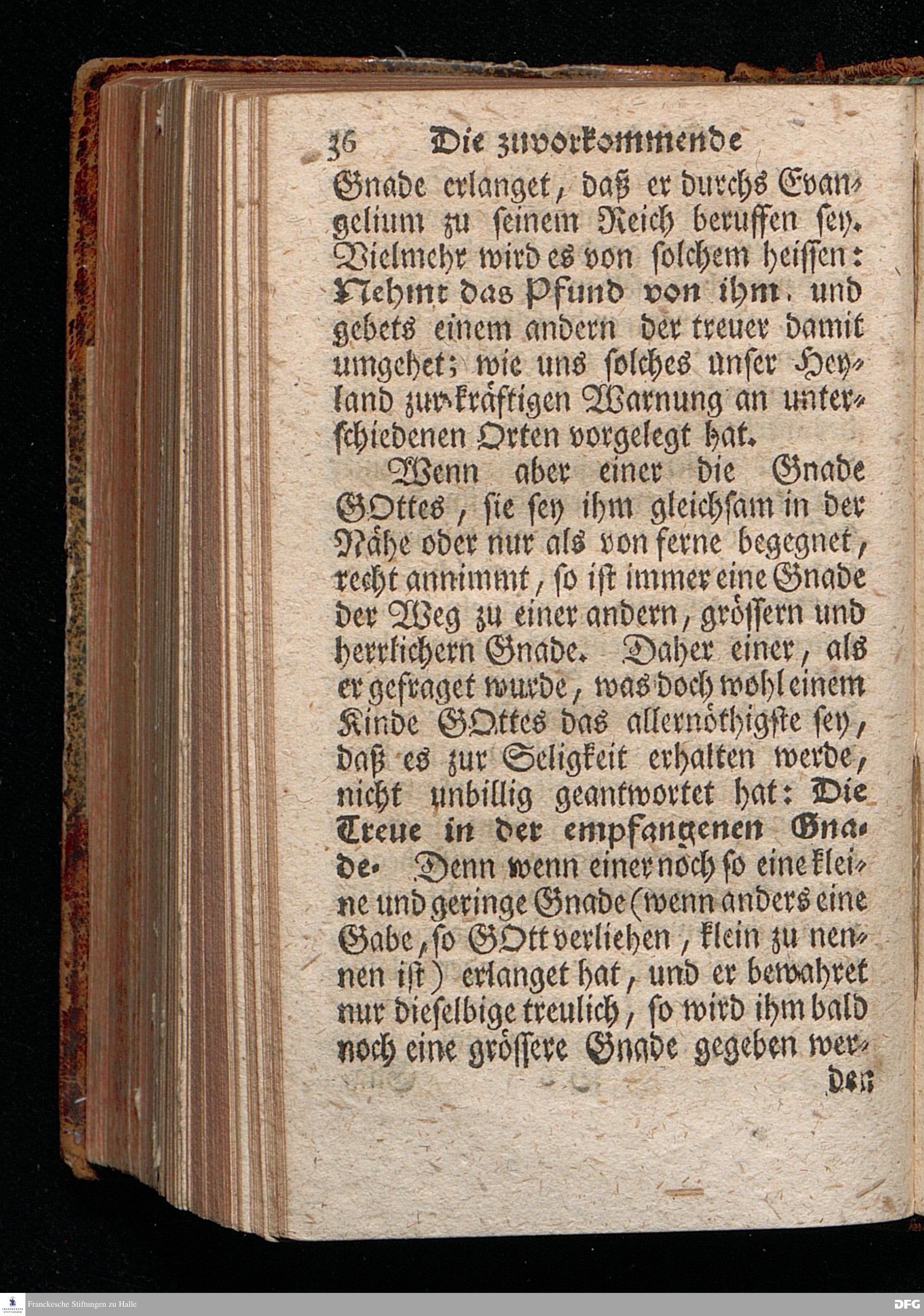 Die Zuvorkommende Gnade GOttes, In einer Vor dem hier versammleten Hoch=Fürstl.Dessauischen Regiment am XVI.Sonntag nach Trinit.1721. gehaltenen Predigt aus dem ordentlichen Evangelio Luc.VII, 11-17. In der Schul=Kirche zu Halle vorgestellet von August Hermann Francken, S.Theol.Prof.Past.Vlr.& Schol. HALLE, gedruckt im Wäysen=Hause, 1729.