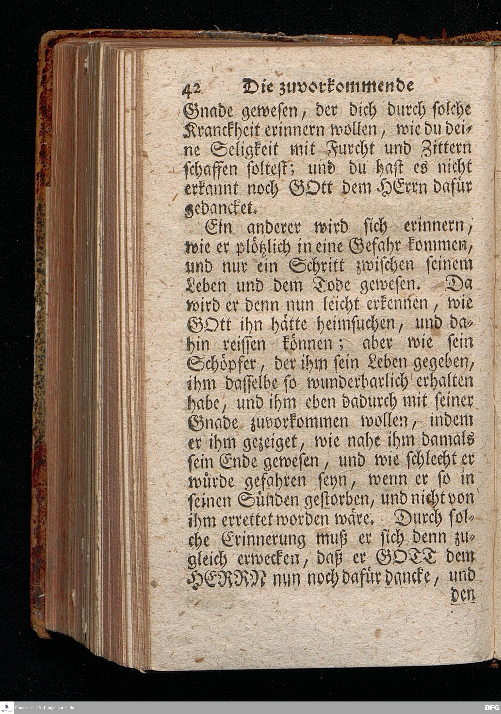 Die Zuvorkommende Gnade GOttes, In einer Vor dem hier versammleten Hoch=Fürstl.Dessauischen Regiment am XVI.Sonntag nach Trinit.1721. gehaltenen Predigt aus dem ordentlichen Evangelio Luc.VII, 11-17. In der Schul=Kirche zu Halle vorgestellet von August Hermann Francken, S.Theol.Prof.Past.Vlr.& Schol. HALLE, gedruckt im Wäysen=Hause, 1729.