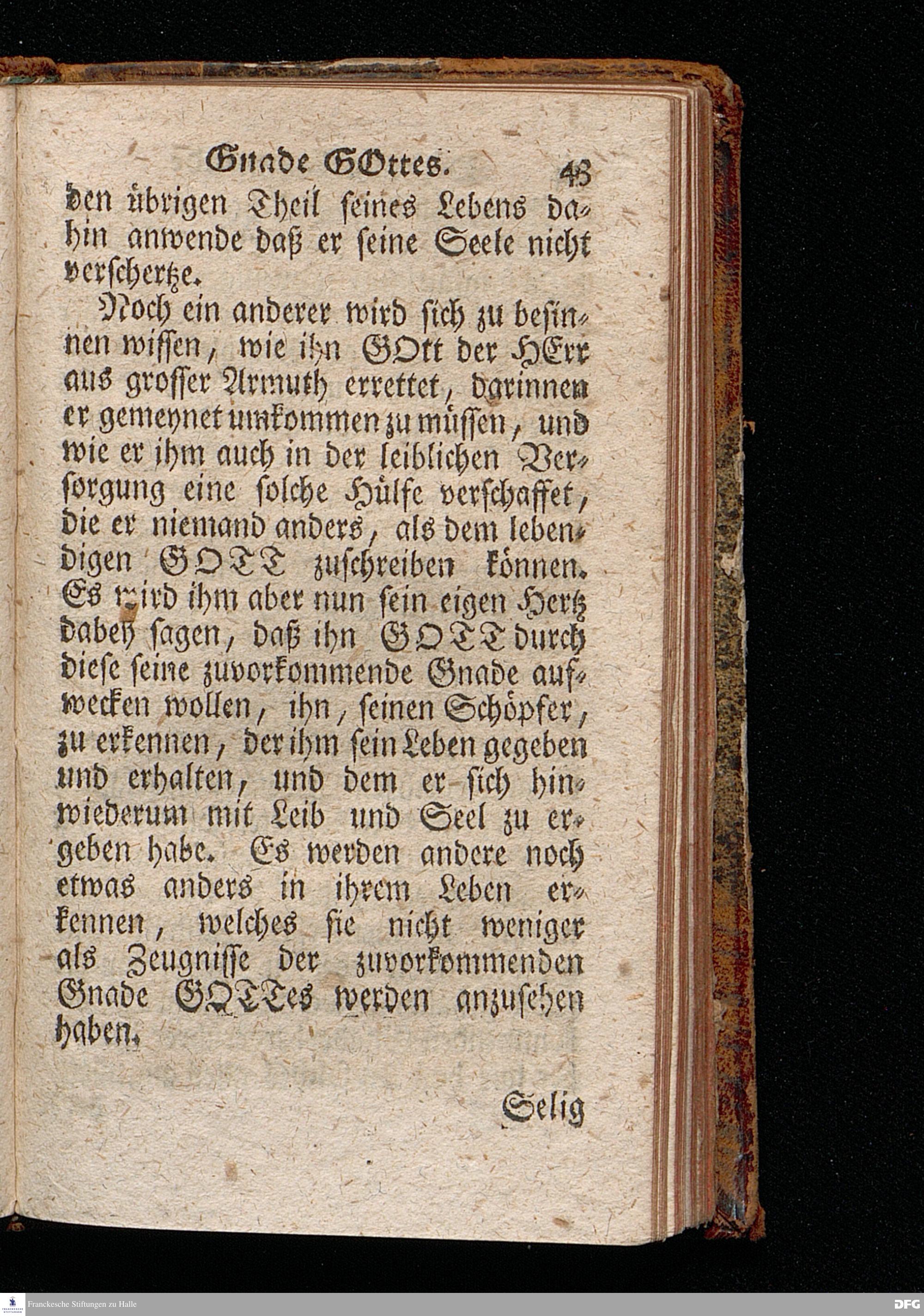 Die Zuvorkommende Gnade GOttes, In einer Vor dem hier versammleten Hoch=Fürstl.Dessauischen Regiment am XVI.Sonntag nach Trinit.1721. gehaltenen Predigt aus dem ordentlichen Evangelio Luc.VII, 11-17. In der Schul=Kirche zu Halle vorgestellet von August Hermann Francken, S.Theol.Prof.Past.Vlr.& Schol. HALLE, gedruckt im Wäysen=Hause, 1729.