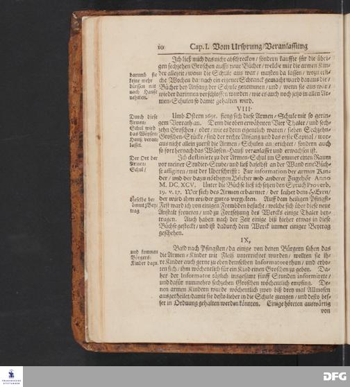 Die Fußstapffen Des noch lebenden und waltenden liebreichen und getreuen GOTTES / Zur Beschämung des Unglaubens / Und Stärckung des Glaubens Durch den Ausführlichen Bericht Vom Wäysen=Hause / Armen=Schulen / und übriger Armen=Verpflegung Zu Glaucha an Halle / Wie selbige fortgesetzet biß Ostern Anno 1702. Entdecket von August Hermann Francken S.Th.Prof.Ord.und Past.