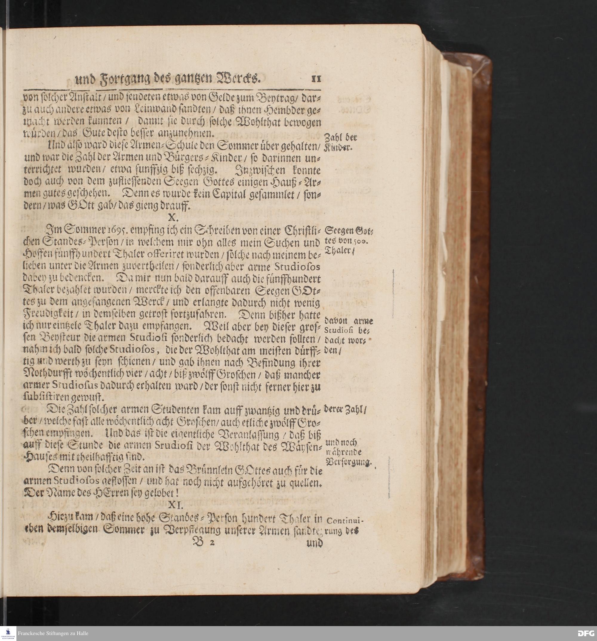 Die Fußstapffen Des noch lebenden und waltenden liebreichen und getreuen GOTTES / Zur Beschämung des Unglaubens / Und Stärckung des Glaubens Durch den Ausführlichen Bericht Vom Wäysen=Hause / Armen=Schulen / und übriger Armen=Verpflegung Zu Glaucha an Halle / Wie selbige fortgesetzet biß Ostern Anno 1702. Entdecket von August Hermann Francken S.Th.Prof.Ord.und Past.