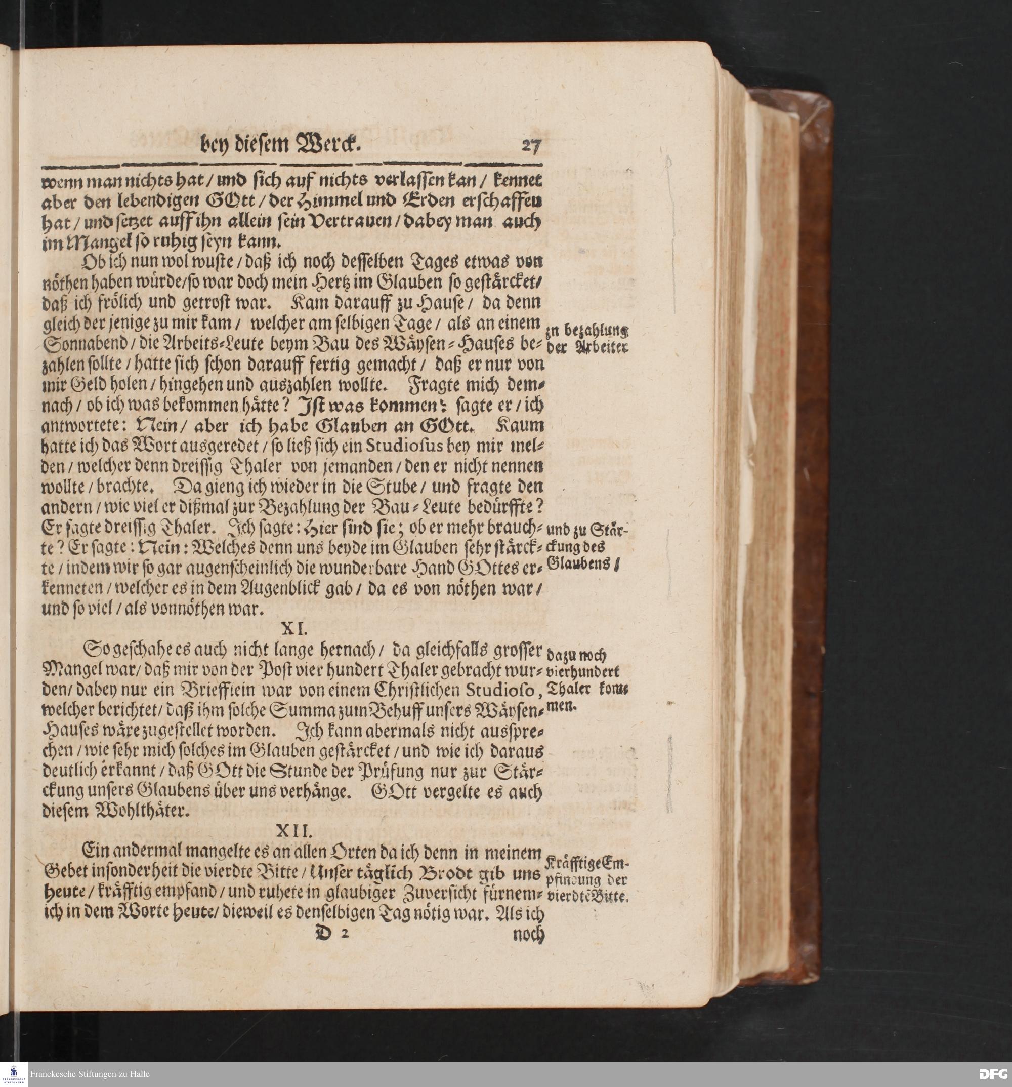Die Fußstapffen Des noch lebenden und waltenden liebreichen und getreuen GOTTES / Zur Beschämung des Unglaubens / Und Stärckung des Glaubens Durch den Ausführlichen Bericht Vom Wäysen=Hause / Armen=Schulen / und übriger Armen=Verpflegung Zu Glaucha an Halle / Wie selbige fortgesetzet biß Ostern Anno 1702. Entdecket von August Hermann Francken S.Th.Prof.Ord.und Past.