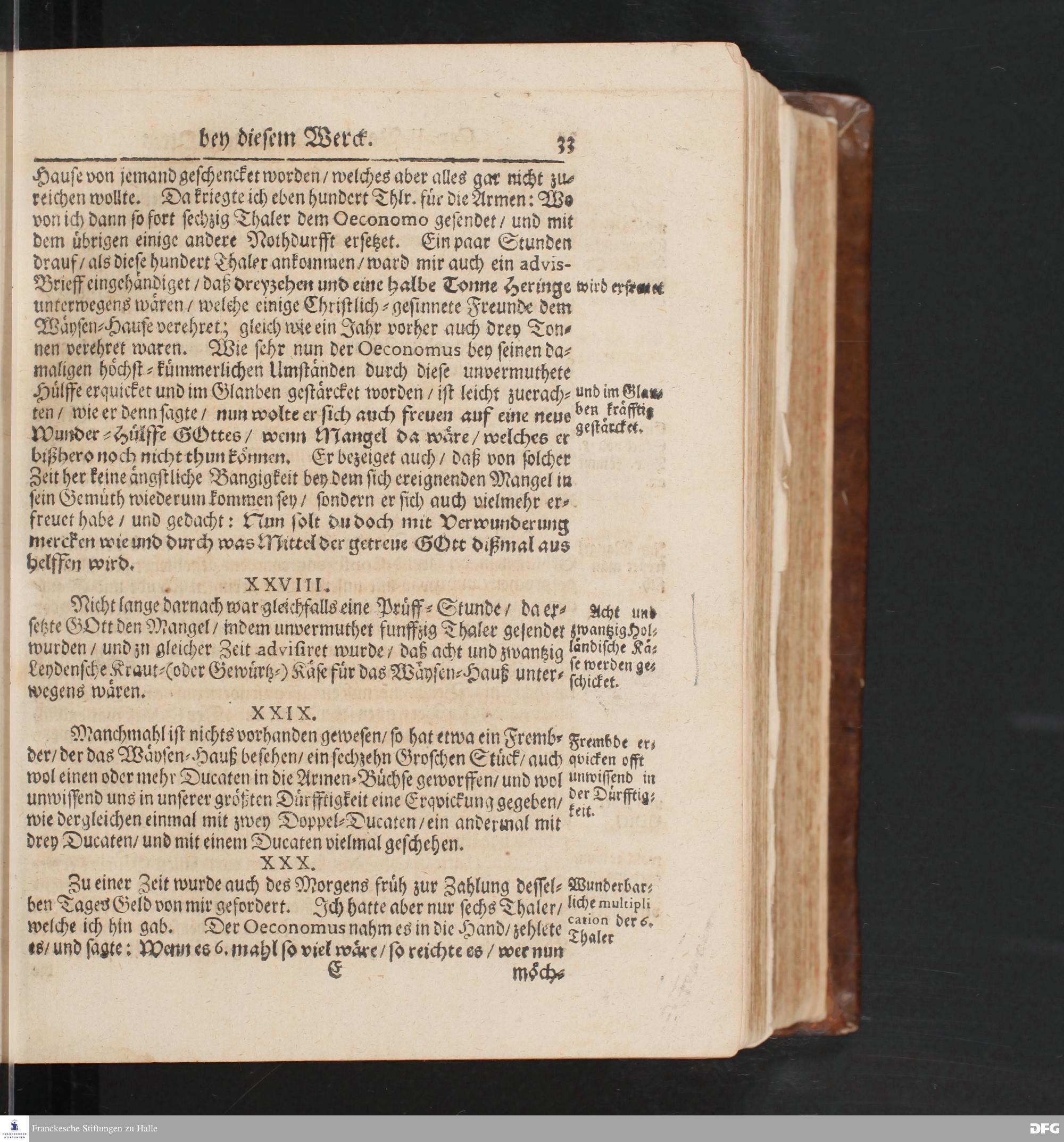 Die Fußstapffen Des noch lebenden und waltenden liebreichen und getreuen GOTTES / Zur Beschämung des Unglaubens / Und Stärckung des Glaubens Durch den Ausführlichen Bericht Vom Wäysen=Hause / Armen=Schulen / und übriger Armen=Verpflegung Zu Glaucha an Halle / Wie selbige fortgesetzet biß Ostern Anno 1702. Entdecket von August Hermann Francken S.Th.Prof.Ord.und Past.