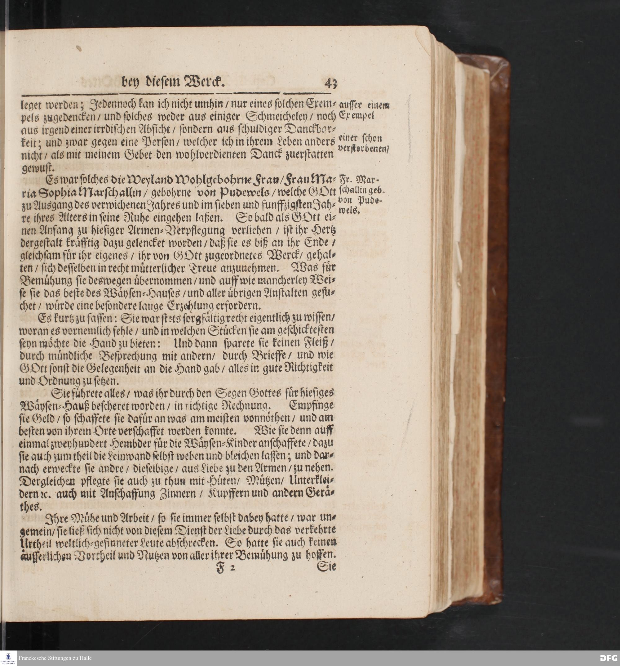 Die Fußstapffen Des noch lebenden und waltenden liebreichen und getreuen GOTTES / Zur Beschämung des Unglaubens / Und Stärckung des Glaubens Durch den Ausführlichen Bericht Vom Wäysen=Hause / Armen=Schulen / und übriger Armen=Verpflegung Zu Glaucha an Halle / Wie selbige fortgesetzet biß Ostern Anno 1702. Entdecket von August Hermann Francken S.Th.Prof.Ord.und Past.