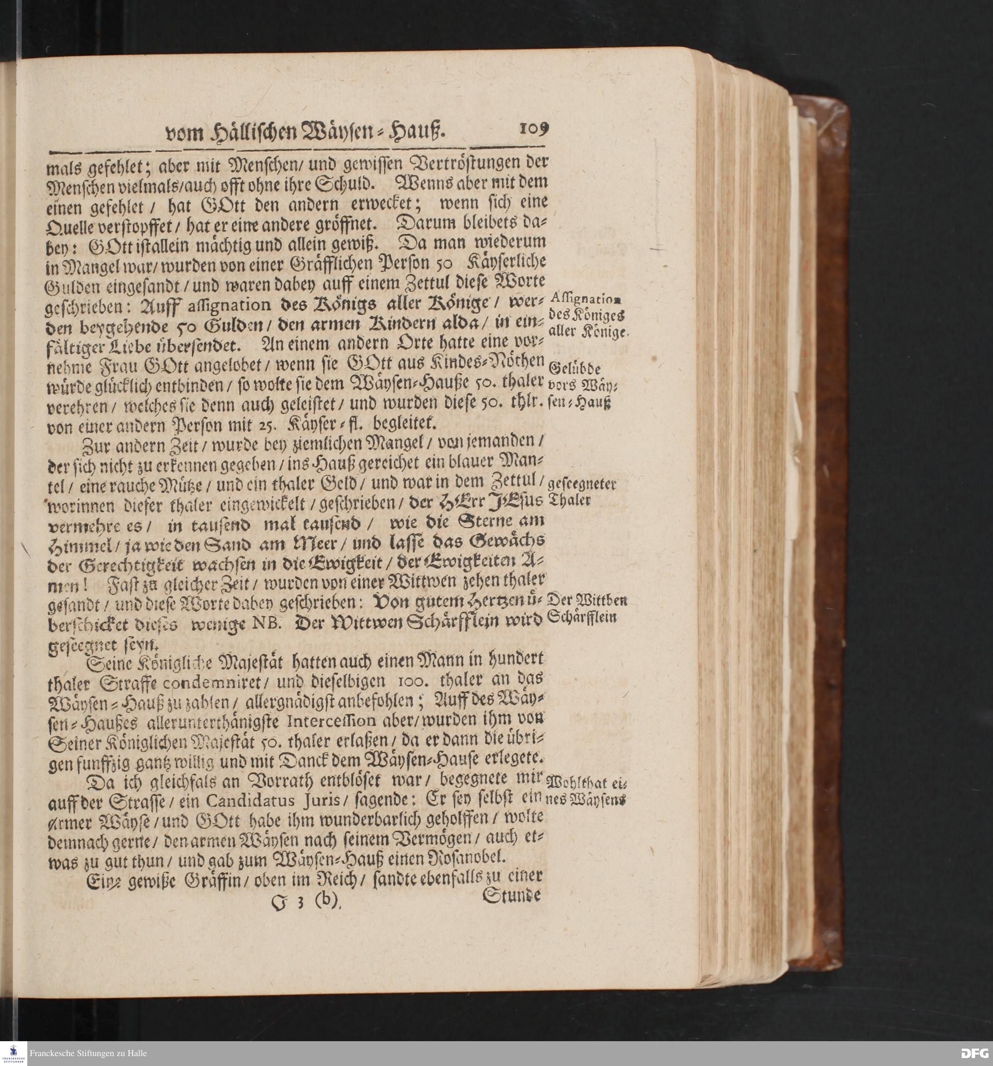 Fortsetzung Der Fußstapffen Des noch lebenden und waltenden liebreichen und getreuen GOTTES/ Zur Beschämung des Unglaubens/ Und Stärckung des Glaubens/ Durch den Ausführlichen Bericht Vom Wäysen=Hause/ Armen=Schulen und übrigen Armen=Verpflegung Zu Glaucha an Halle/ Wie selbige von Ostern 1701 biß auffs Ende desselbigen Jahres fortgesetzte/ In einem Send=Schreiben An einen auswärtigen Freund. [Halle: Waisenhaus, 1702]