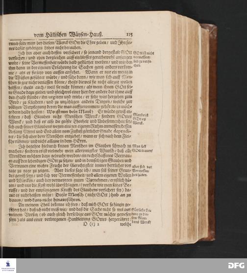 Fortsetzung Der Fußstapffen Des noch lebenden und waltenden liebreichen und getreuen GOTTES/ Zur Beschämung des Unglaubens/ Und Stärckung des Glaubens/ Durch den Ausführlichen Bericht Vom Wäysen=Hause/ Armen=Schulen und übrigen Armen=Verpflegung Zu Glaucha an Halle/ Wie selbige von Ostern 1701 biß auffs Ende desselbigen Jahres fortgesetzte/ In einem Send=Schreiben An einen auswärtigen Freund. [Halle: Waisenhaus, 1702]