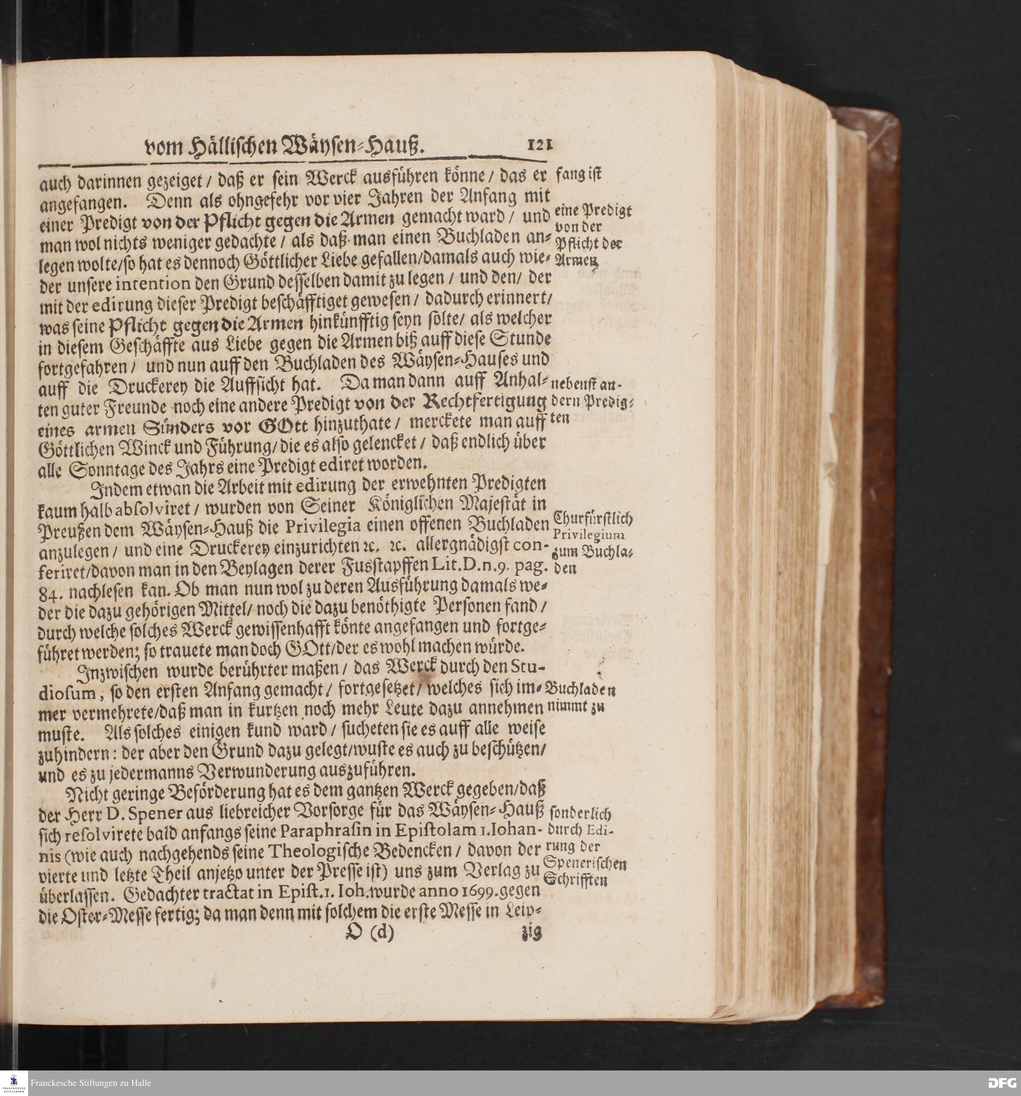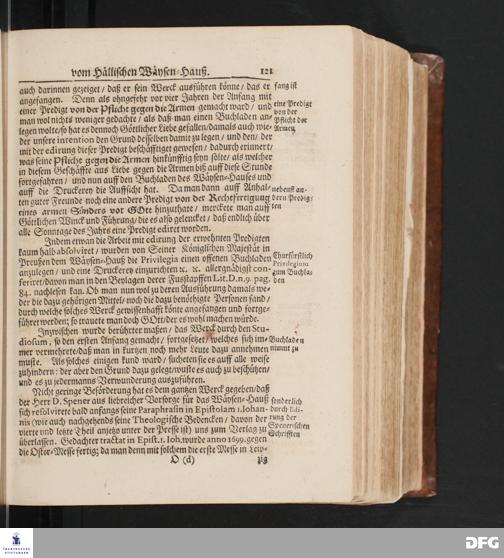 Fortsetzung Der Fußstapffen Des noch lebenden und waltenden liebreichen und getreuen GOTTES/ Zur Beschämung des Unglaubens/ Und Stärckung des Glaubens/ Durch den Ausführlichen Bericht Vom Wäysen=Hause/ Armen=Schulen und übrigen Armen=Verpflegung Zu Glaucha an Halle/ Wie selbige von Ostern 1701 biß auffs Ende desselbigen Jahres fortgesetzte/ In einem Send=Schreiben An einen auswärtigen Freund. [Halle: Waisenhaus, 1702]
