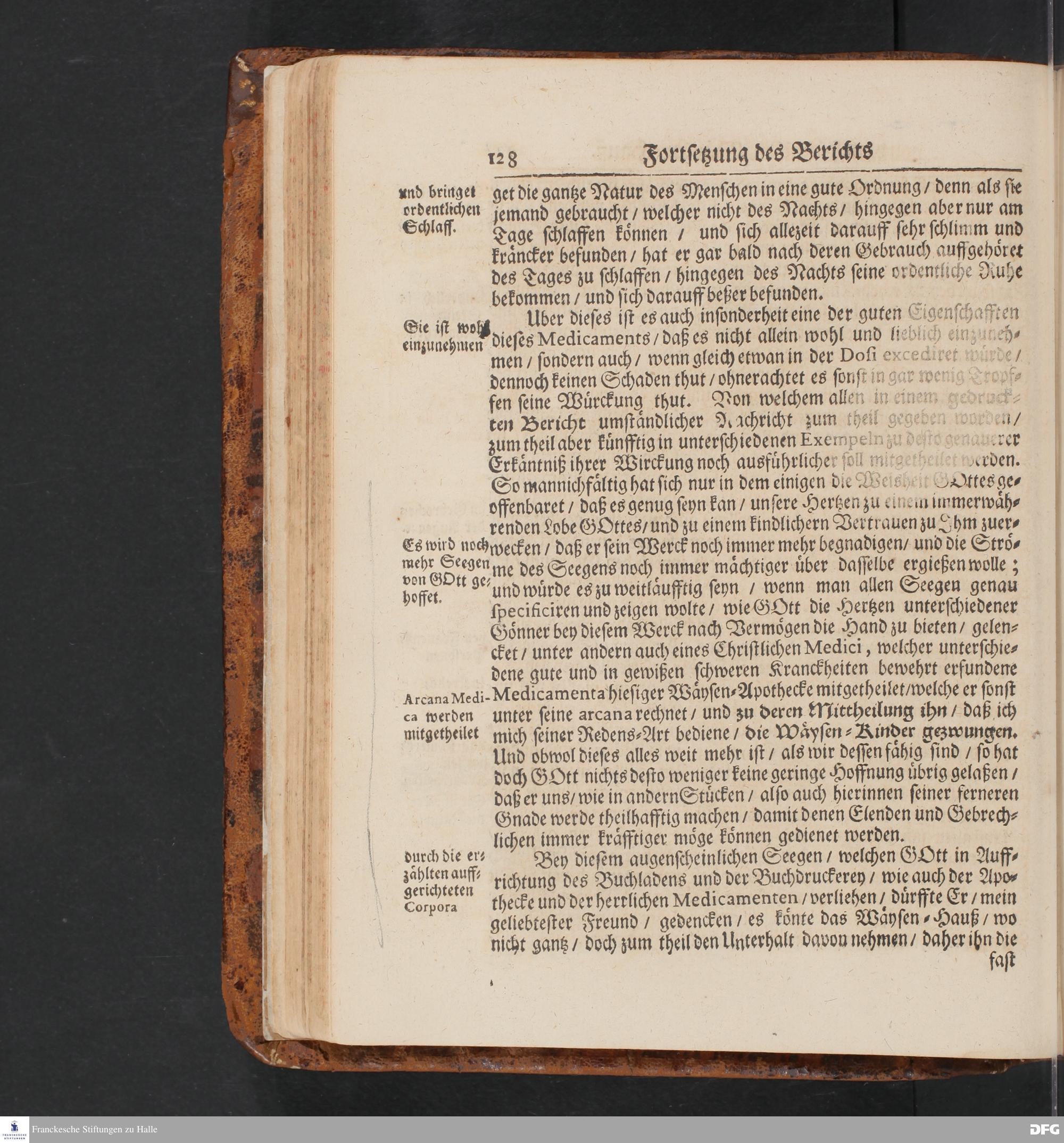 Fortsetzung Der Fußstapffen Des noch lebenden und waltenden liebreichen und getreuen GOTTES/ Zur Beschämung des Unglaubens/ Und Stärckung des Glaubens/ Durch den Ausführlichen Bericht Vom Wäysen=Hause/ Armen=Schulen und übrigen Armen=Verpflegung Zu Glaucha an Halle/ Wie selbige von Ostern 1701 biß auffs Ende desselbigen Jahres fortgesetzte/ In einem Send=Schreiben An einen auswärtigen Freund. [Halle: Waisenhaus, 1702]