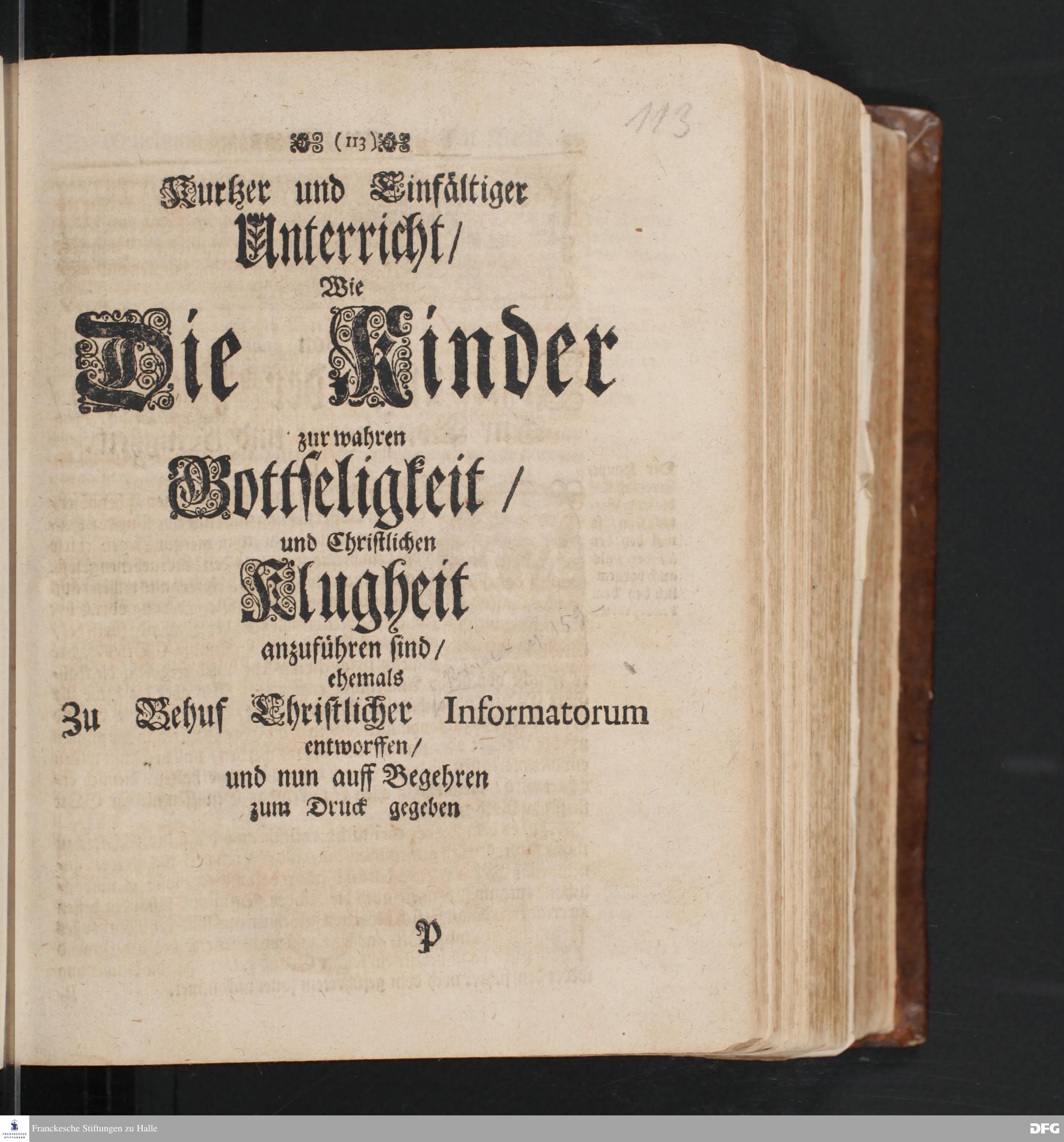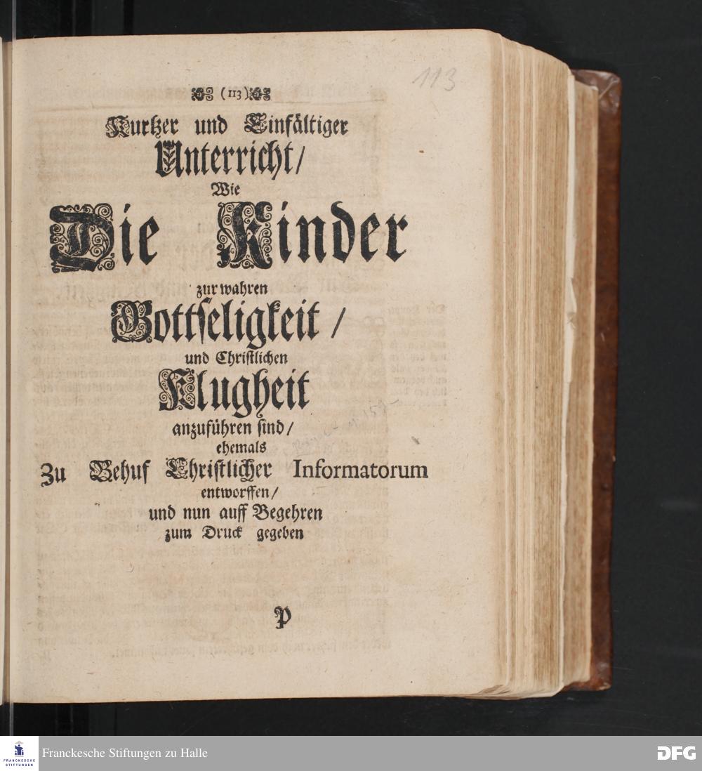 Kurtzer und Einfältiger Unterricht / Wie Die Kinder zur wahren Gottseligkeit / und...
