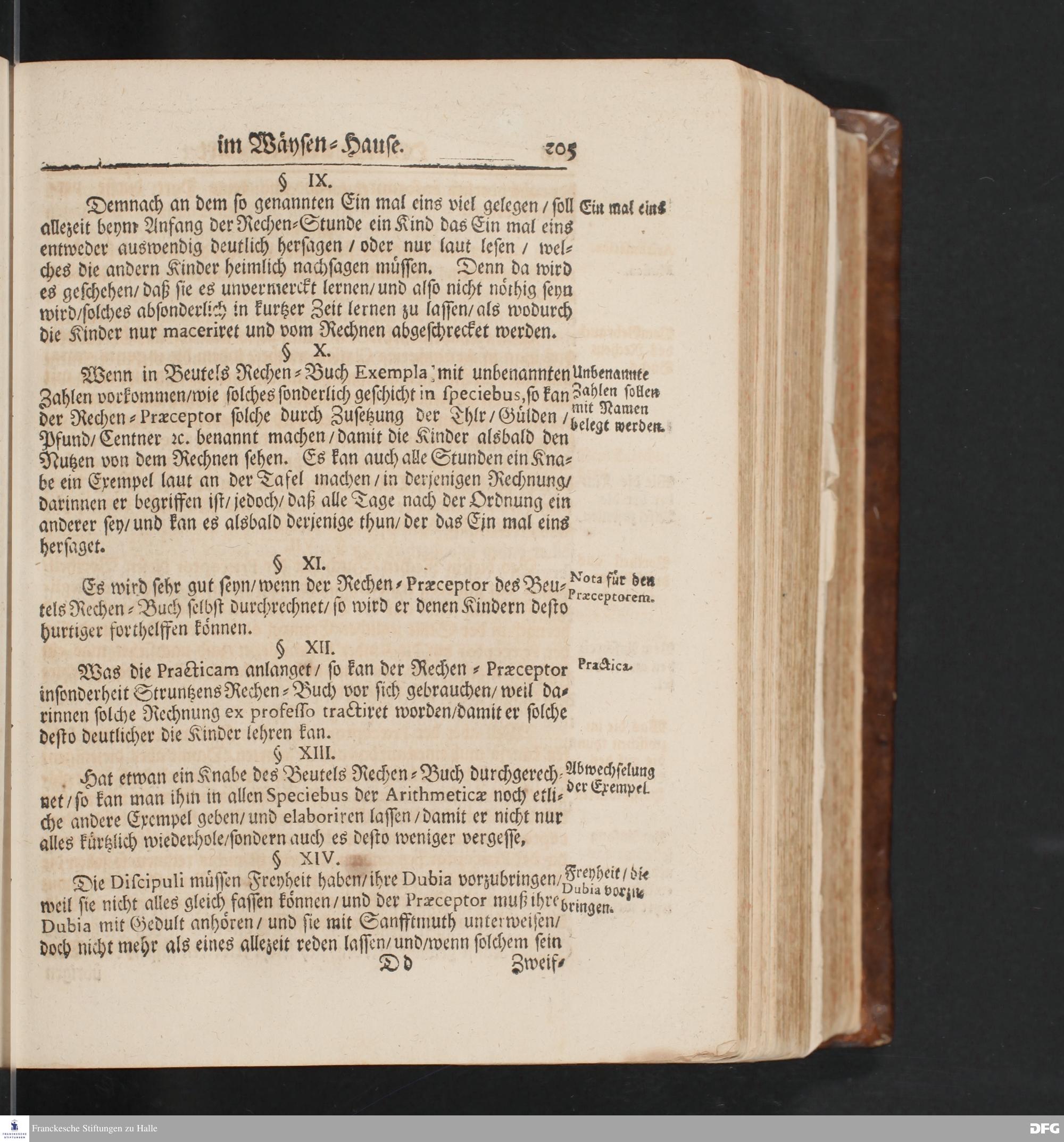 Ordnung Und Lehr=Art/ Wie selbige in denen zum Waysen=Hauße gehörigen Schulen eingeführet ist / Worinnen vornemlich zu befinden/ Wie die Kinder in und ausser der Schul in Christlicher Zucht zu halten/ zum Lesen /zierlichen Schreiben/ Rechnen/ wie auch zur Music und andern nützlichen Dingen anzuführen sind/.