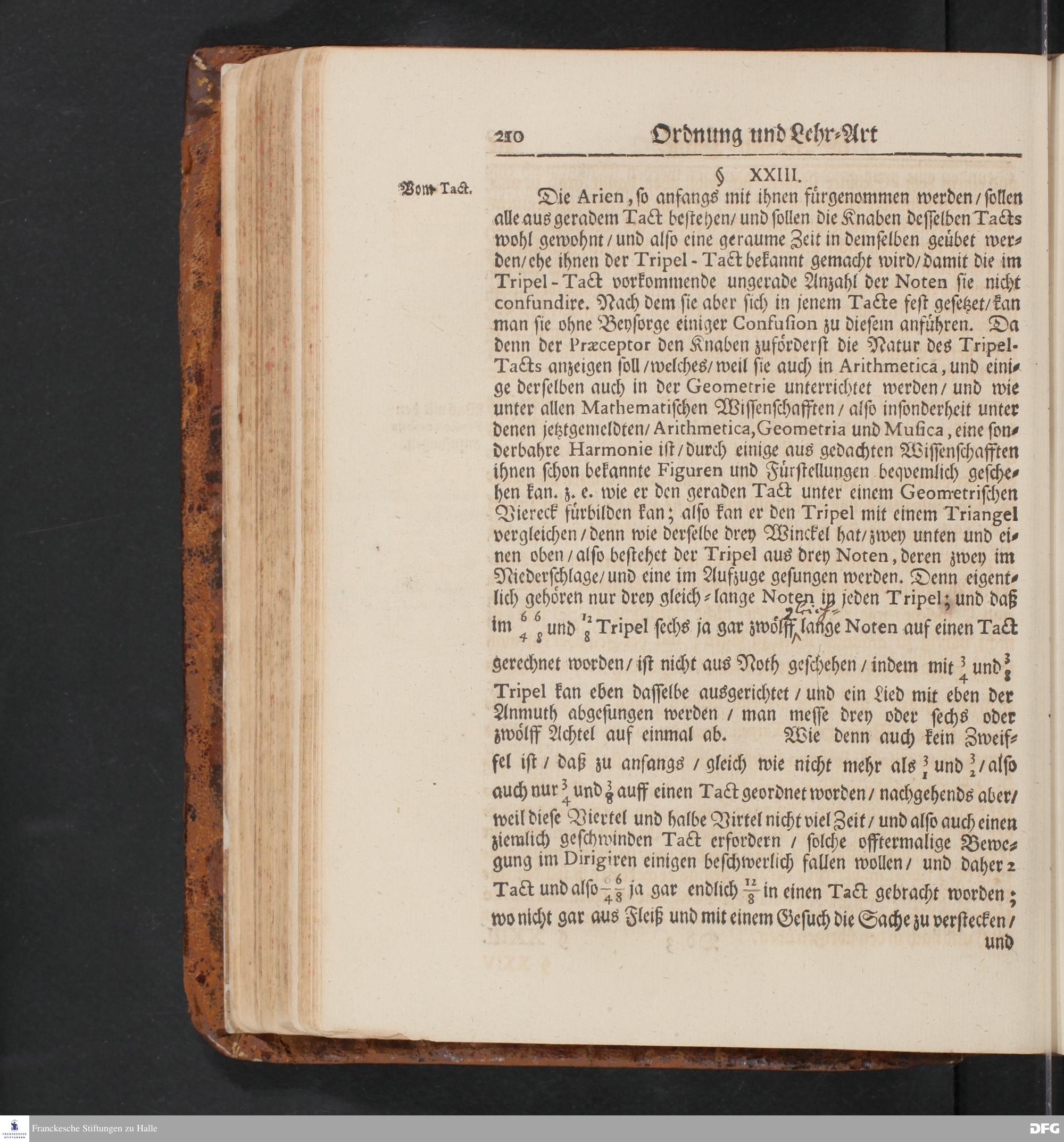 Ordnung Und Lehr=Art/ Wie selbige in denen zum Waysen=Hauße gehörigen Schulen eingeführet ist / Worinnen vornemlich zu befinden/ Wie die Kinder in und ausser der Schul in Christlicher Zucht zu halten/ zum Lesen /zierlichen Schreiben/ Rechnen/ wie auch zur Music und andern nützlichen Dingen anzuführen sind/.