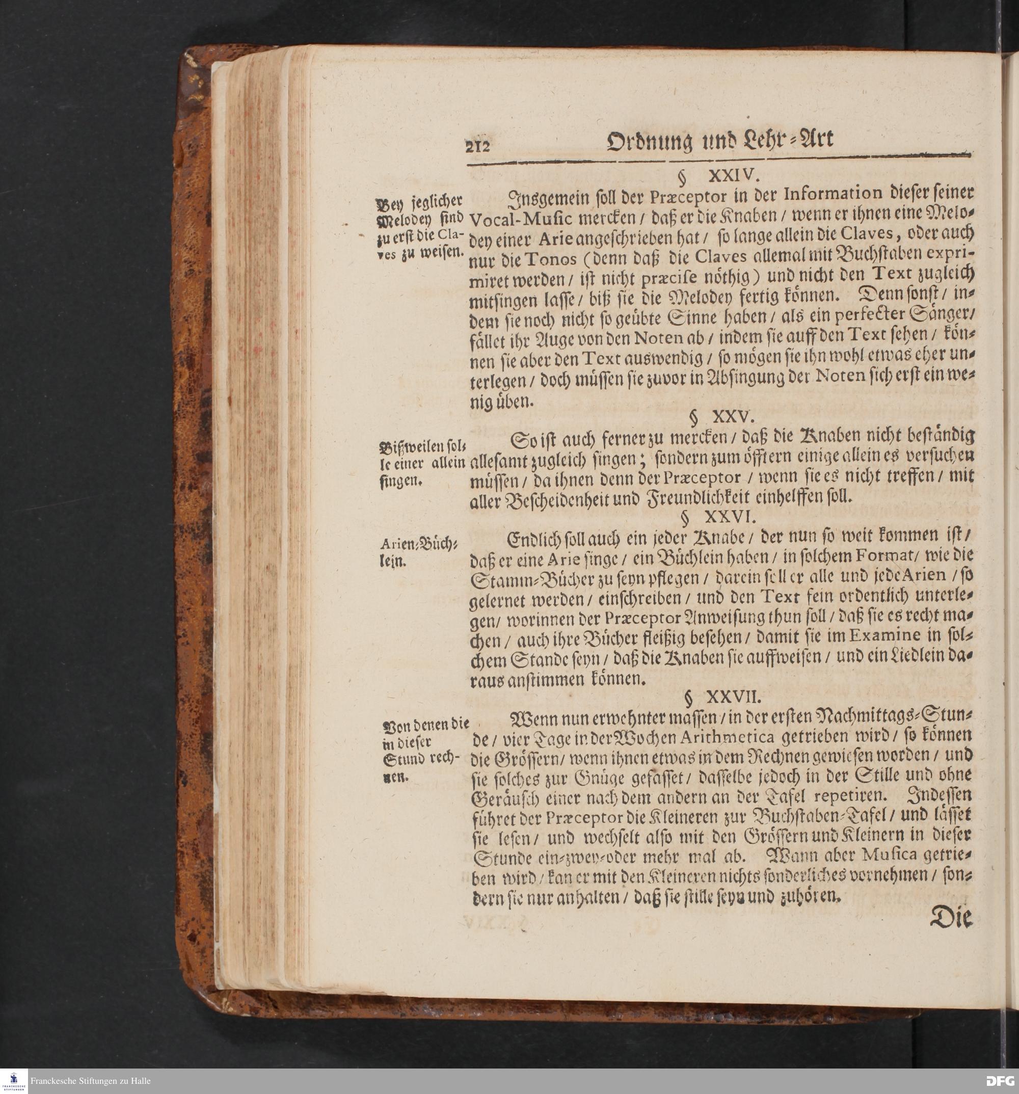 Ordnung Und Lehr=Art/ Wie selbige in denen zum Waysen=Hauße gehörigen Schulen eingeführet ist / Worinnen vornemlich zu befinden/ Wie die Kinder in und ausser der Schul in Christlicher Zucht zu halten/ zum Lesen /zierlichen Schreiben/ Rechnen/ wie auch zur Music und andern nützlichen Dingen anzuführen sind/.