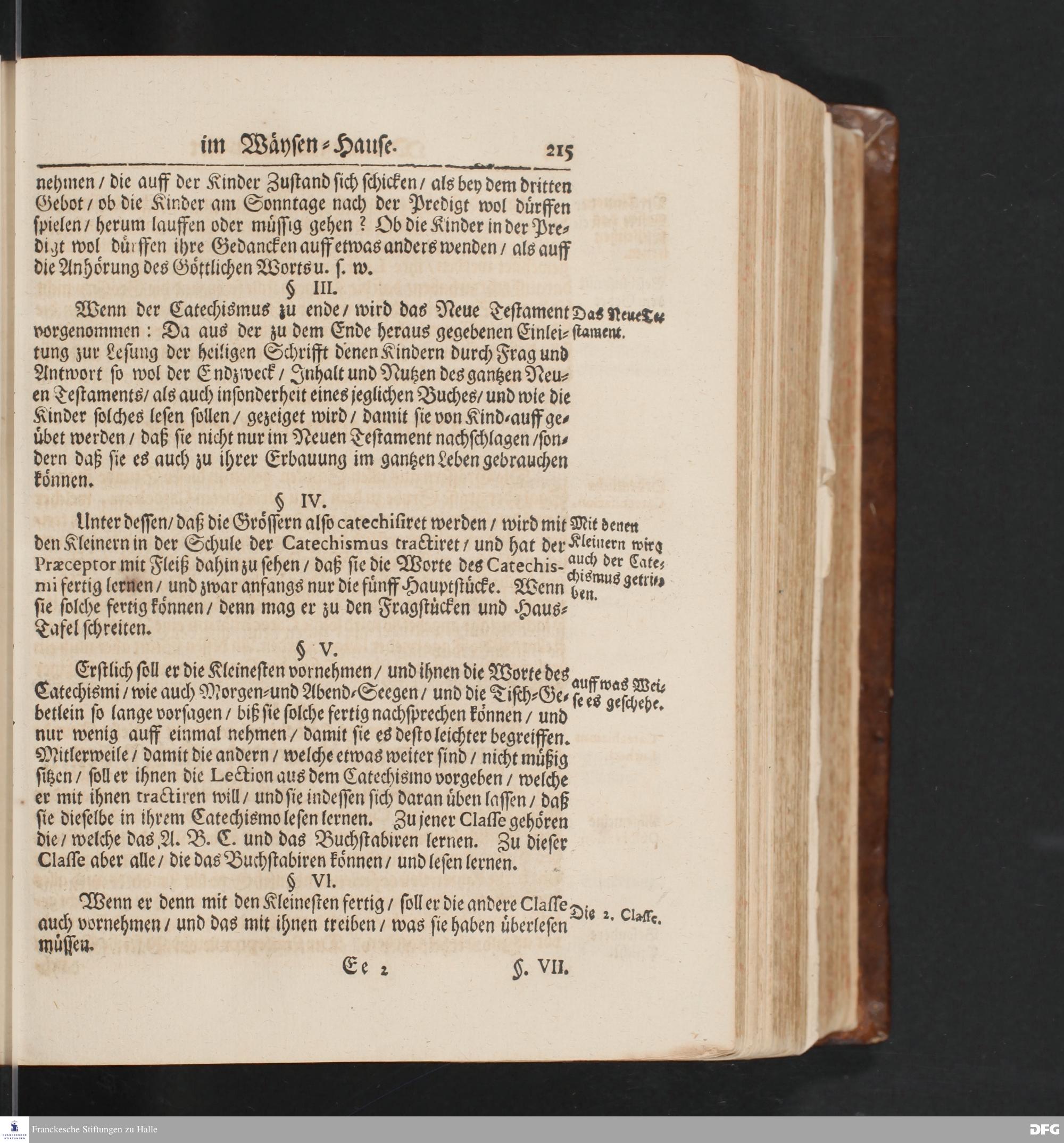 Ordnung Und Lehr=Art/ Wie selbige in denen zum Waysen=Hauße gehörigen Schulen eingeführet ist / Worinnen vornemlich zu befinden/ Wie die Kinder in und ausser der Schul in Christlicher Zucht zu halten/ zum Lesen /zierlichen Schreiben/ Rechnen/ wie auch zur Music und andern nützlichen Dingen anzuführen sind/.