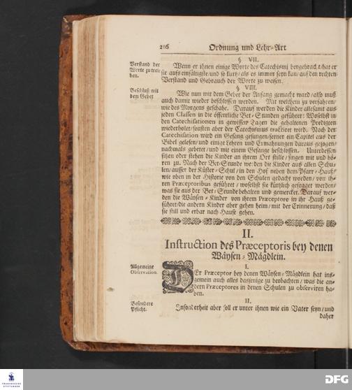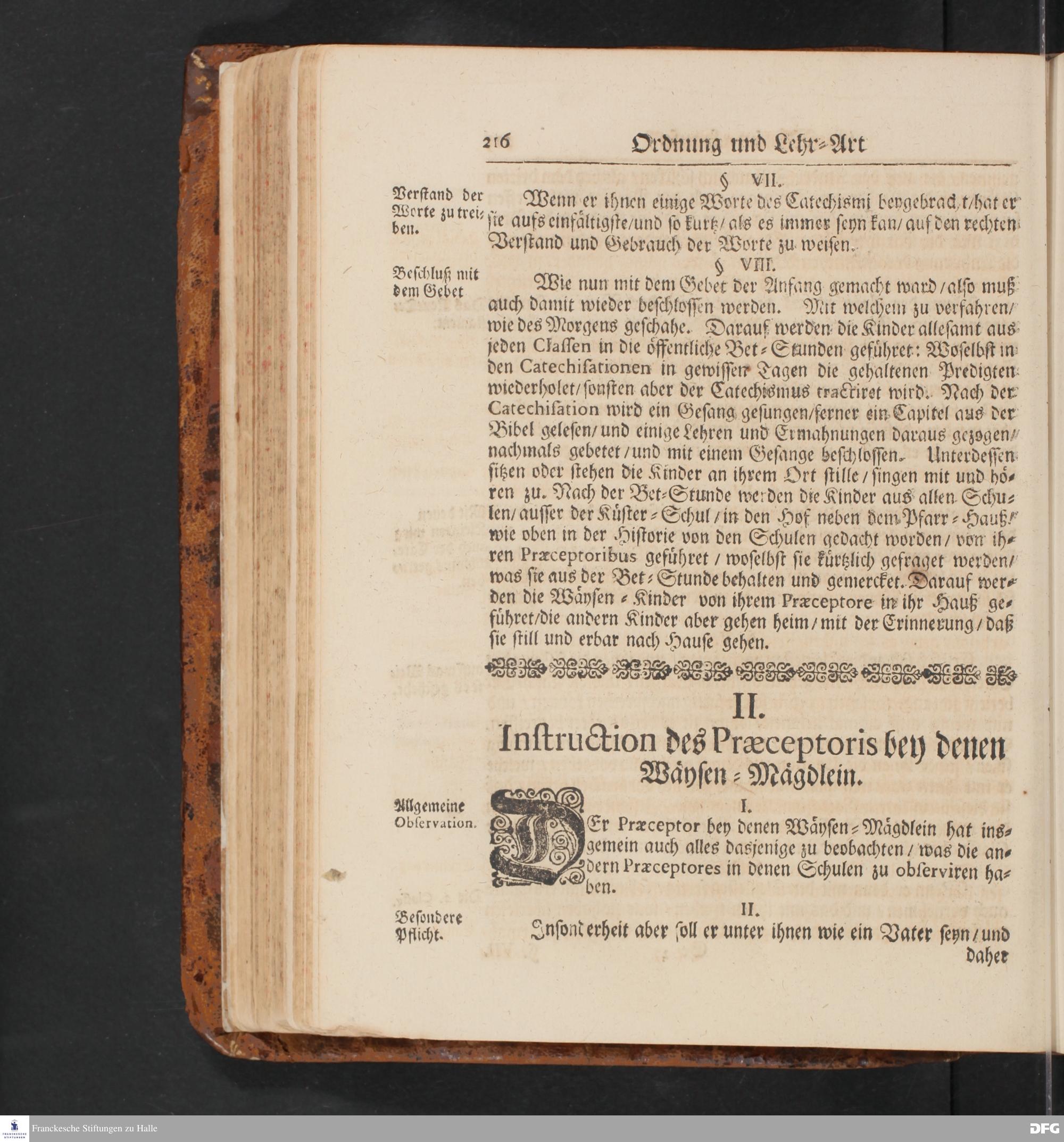 Ordnung Und Lehr=Art/ Wie selbige in denen zum Waysen=Hauße gehörigen Schulen eingeführet ist / Worinnen vornemlich zu befinden/ Wie die Kinder in und ausser der Schul in Christlicher Zucht zu halten/ zum Lesen /zierlichen Schreiben/ Rechnen/ wie auch zur Music und andern nützlichen Dingen anzuführen sind/.