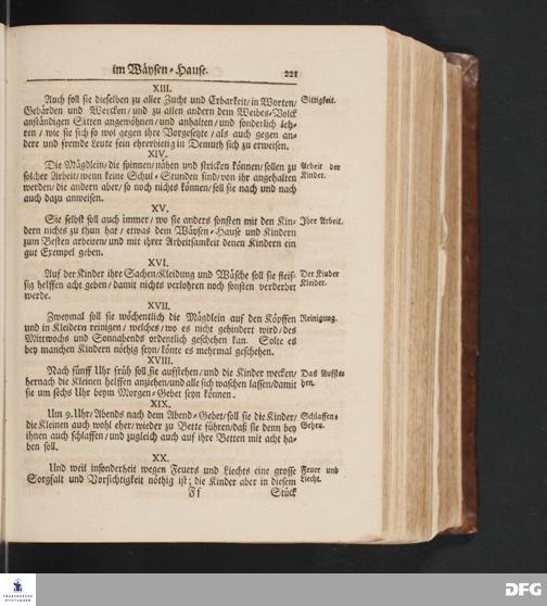 Ordnung Und Lehr=Art/ Wie selbige in denen zum Waysen=Hauße gehörigen Schulen eingeführet ist / Worinnen vornemlich zu befinden/ Wie die Kinder in und ausser der Schul in Christlicher Zucht zu halten/ zum Lesen /zierlichen Schreiben/ Rechnen/ wie auch zur Music und andern nützlichen Dingen anzuführen sind/.