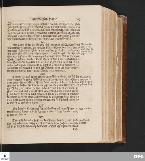 Ordnung Und Lehr=Art/ Wie selbige in denen zum Waysen=Hauße gehörigen Schulen eingeführet ist / Worinnen vornemlich zu befinden/ Wie die Kinder in und ausser der Schul in Christlicher Zucht zu halten/ zum Lesen /zierlichen Schreiben/ Rechnen/ wie auch zur Music und andern nützlichen Dingen anzuführen sind/.