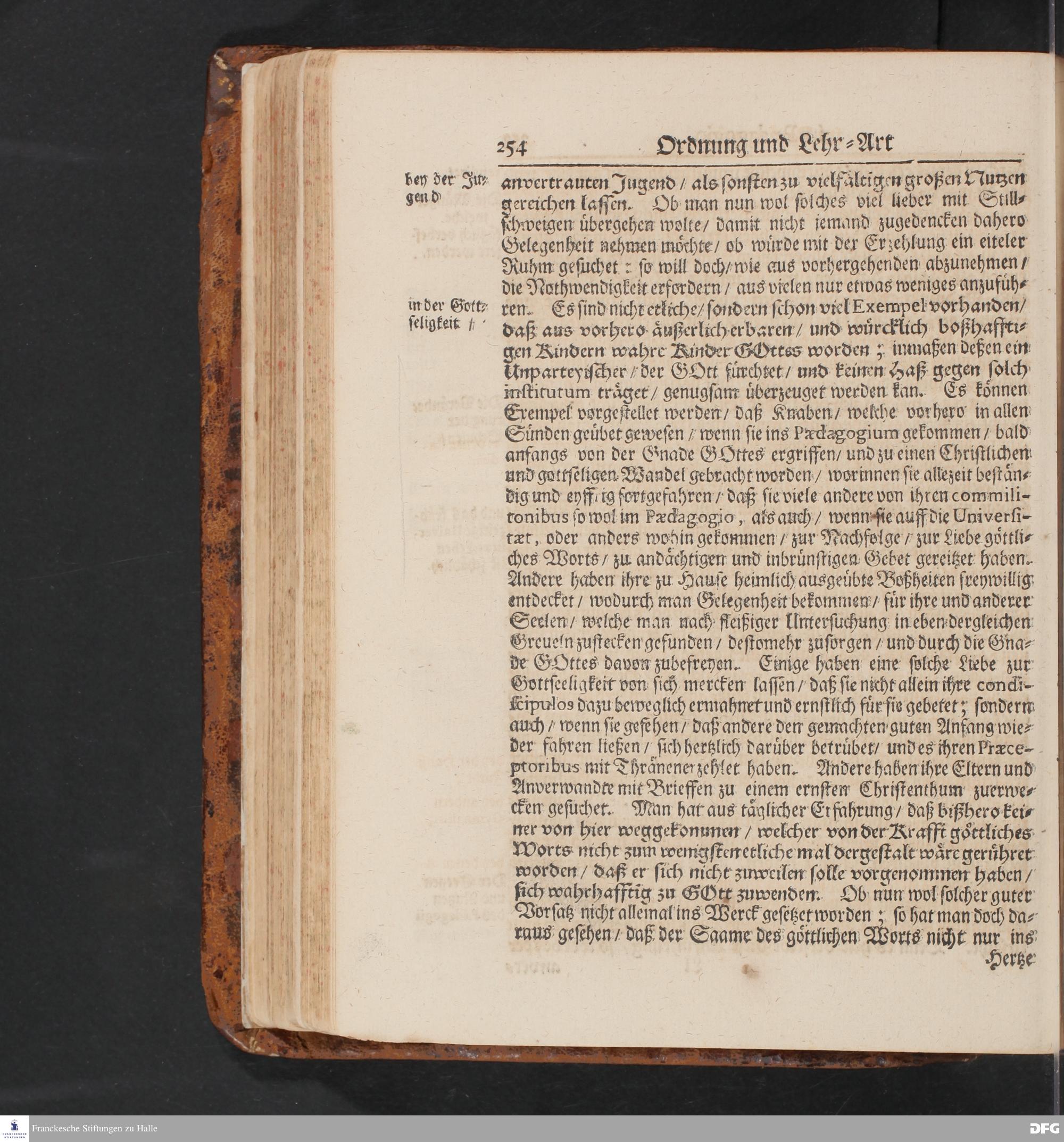 Ordnung und Lehr=Art / Wie selbige in dem PAEDAGOGIO zu Glaucha an Halle eingeführet ist: Worinnen vornemlich zu befinden / Wie die Jugend / nebst der Anweisung zum Christenthum / in Sprachen und Wissenschafften / als in der Lateinischen / Griechischen / Ebräischen und Französischen Sprache / wie auch in Calligraphia, Geographia, Historia, Arithmetica, Geometria, Oratoria, Theologia, und in denen Fundamentis Astronomicis, Botanicis, Anatomicis &c.auf eine kurtze und leichte methode zu unterrichten / und zu denen studiis Academicis zu præpariren sey