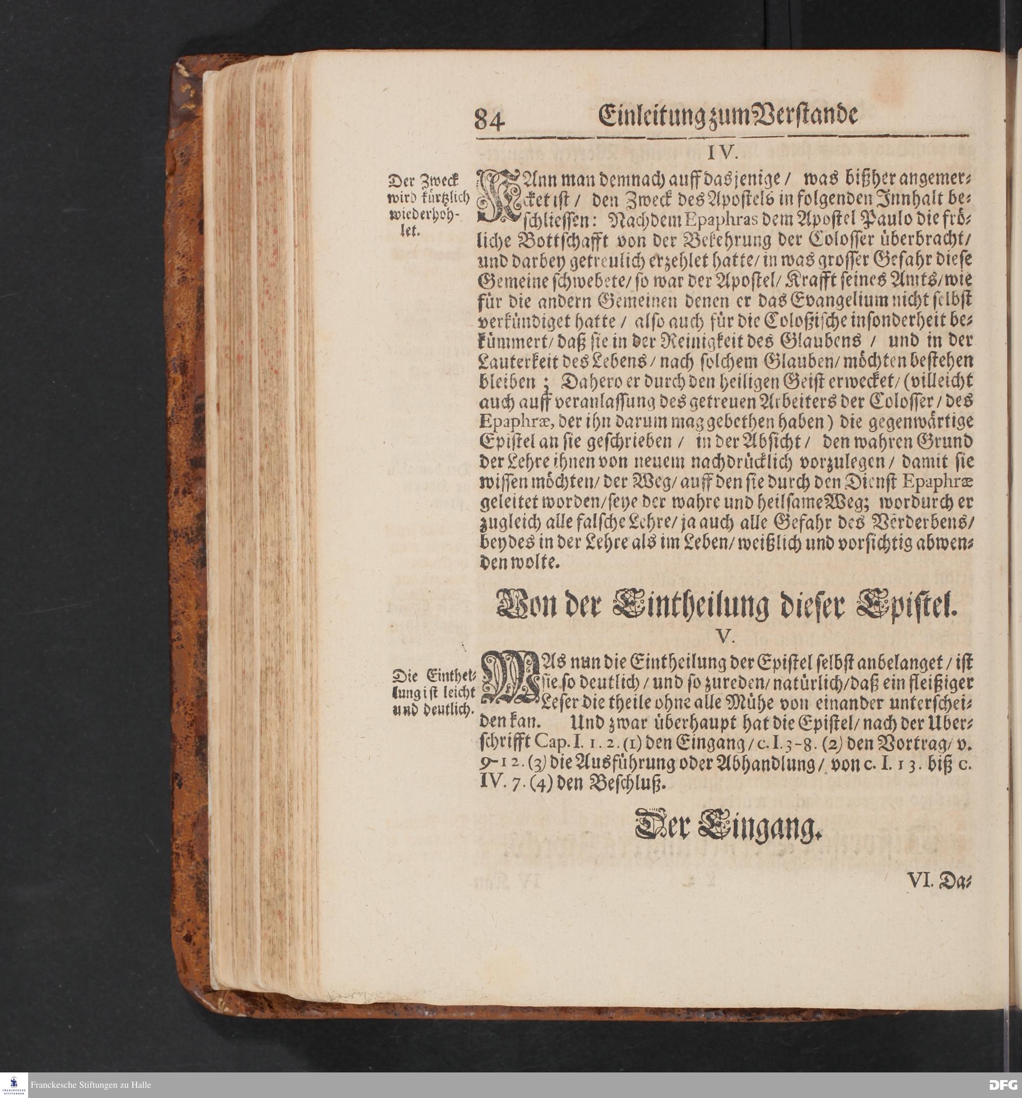 Von der Eintheilung dieser Epistel. V.