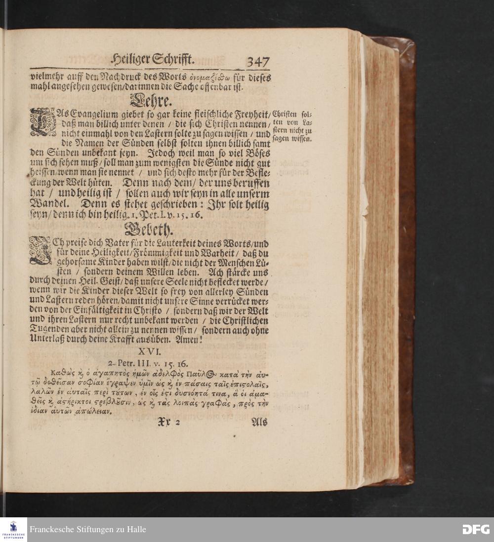 August Hermann Franckens S.Theol.Prof.& Past.Glauch. OBSERVATIONES BIBLICÆ, Oder Anmerckungen über einige Oerter Heil. Schrifft / Darinnen die Teutsche Ubersetzung des Sel.Lutheri gegen den Original-Text gehalten und bescheidentlich gezeiget wird / Wo man dem eigentlichen Wort=Verstande näher kommen könne / Solches auch Zur Erbauung in der Christlichen Lehre angewendet / und im Gebet appliciret wird Vorhin Monat=Weise ediret / Und nun auffs neue durchgesehen.