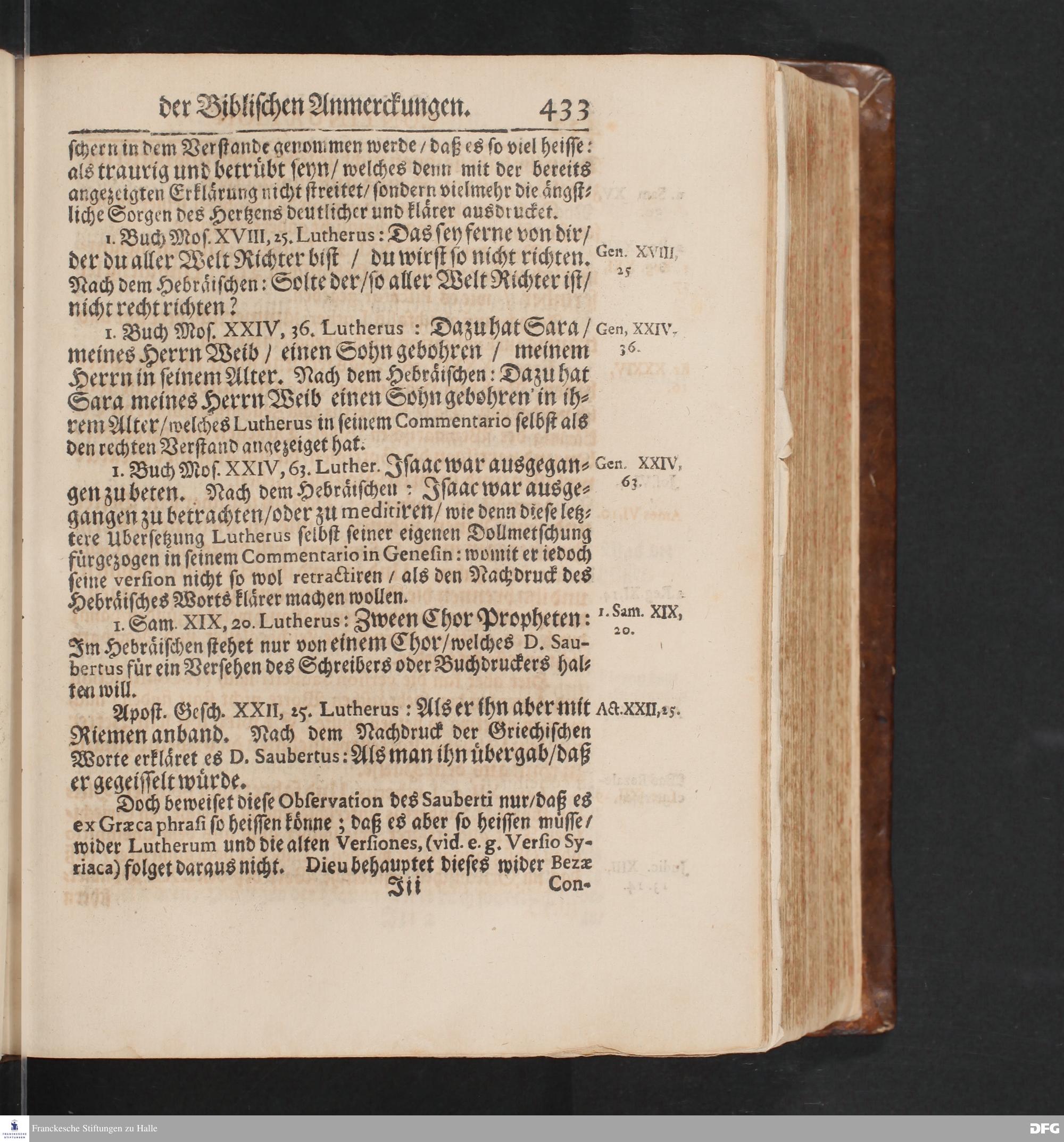 August Hermann Franckens S.Theol.Prof.& Past.Glauch. OBSERVATIONES BIBLICÆ, Oder Anmerckungen über einige Oerter Heil. Schrifft / Darinnen die Teutsche Ubersetzung des Sel.Lutheri gegen den Original-Text gehalten und bescheidentlich gezeiget wird / Wo man dem eigentlichen Wort=Verstande näher kommen könne / Solches auch Zur Erbauung in der Christlichen Lehre angewendet / und im Gebet appliciret wird Vorhin Monat=Weise ediret / Und nun auffs neue durchgesehen.