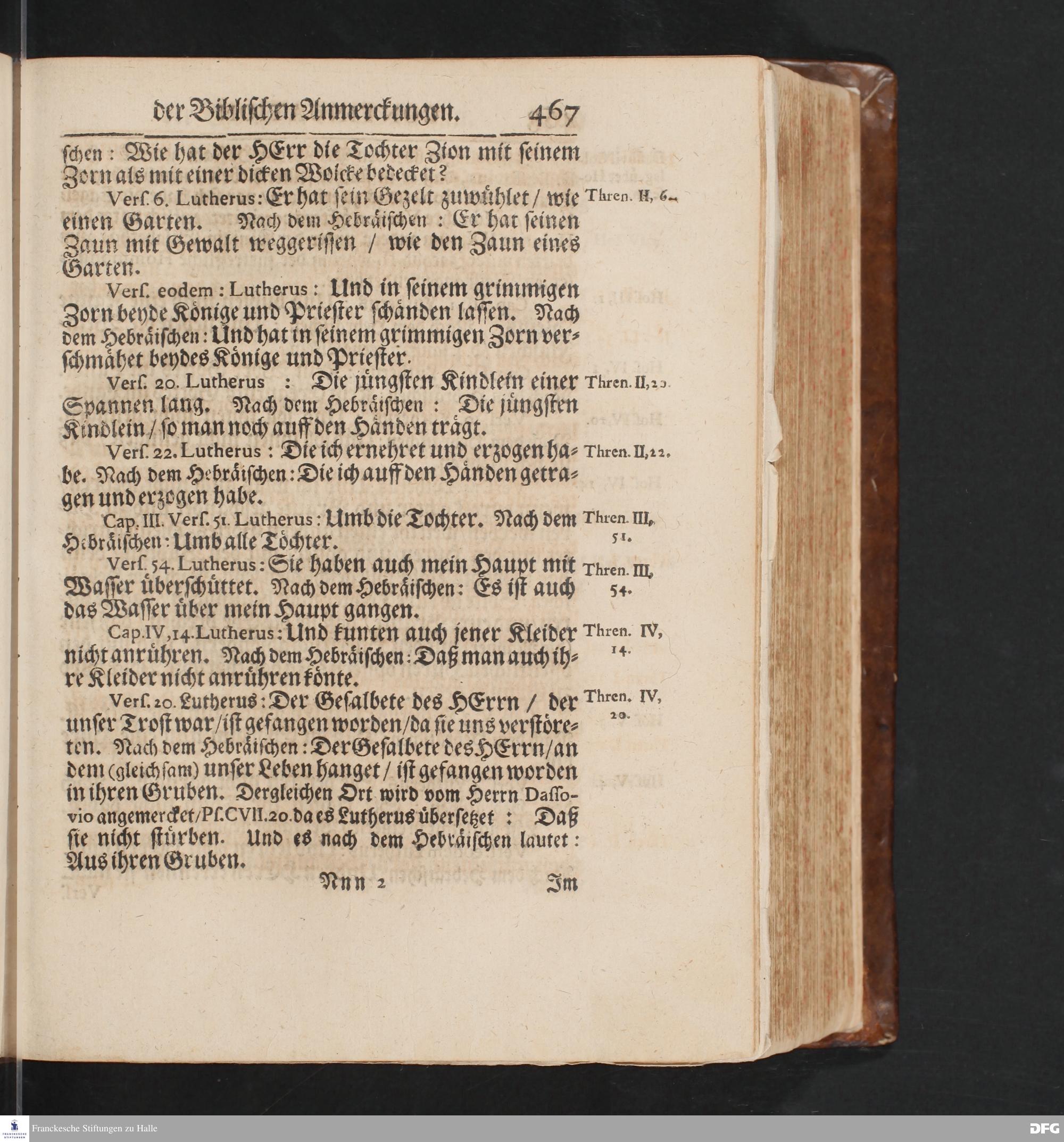 August Hermann Franckens S.Theol.Prof.& Past.Glauch. OBSERVATIONES BIBLICÆ, Oder Anmerckungen über einige Oerter Heil. Schrifft / Darinnen die Teutsche Ubersetzung des Sel.Lutheri gegen den Original-Text gehalten und bescheidentlich gezeiget wird / Wo man dem eigentlichen Wort=Verstande näher kommen könne / Solches auch Zur Erbauung in der Christlichen Lehre angewendet / und im Gebet appliciret wird Vorhin Monat=Weise ediret / Und nun auffs neue durchgesehen.