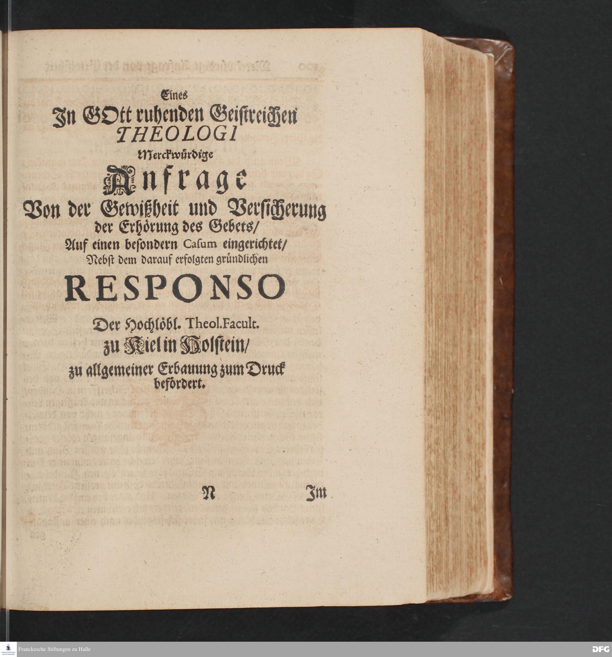 Schrifftmäßige Anweisung recht und Gott-wohlgefällig zu beten. Aufs neue durchgesehen und vermehret, Nebst einer Anfrage an die Theol. Facul. zu Kiel in Holstein/ und dem darauf von Derselben erhaltenen Responso, Die Gewißheit und Versicherung der Erhörung des Gebets betreffend; Dazu noch jetzo einige schöne Reden der H. Väter Chrysostomi und Basilii M. vom Gebet beygefüget sind.