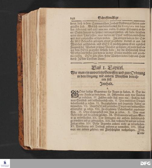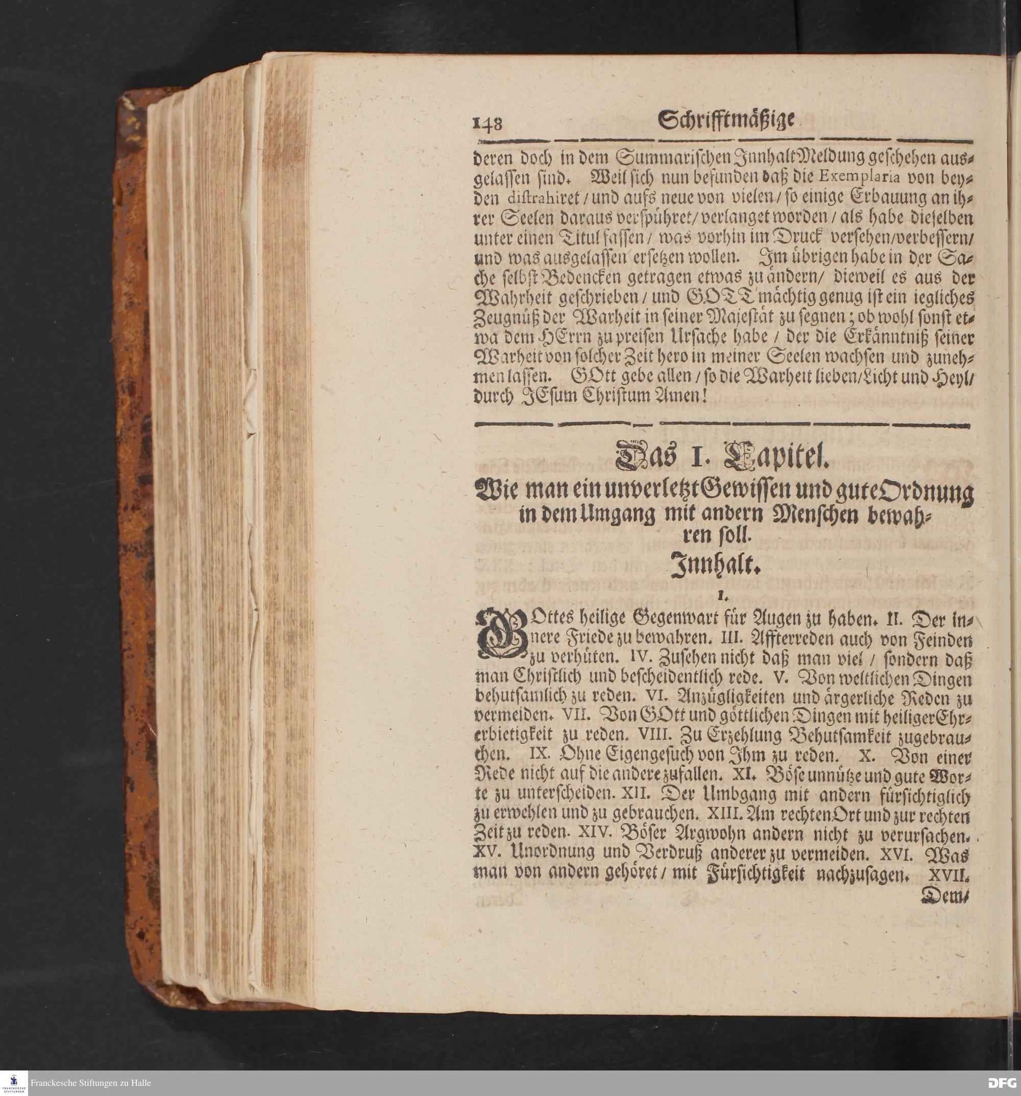 Das I. Capitel. Wie man ein unverletzt Gewissen und gute Ordnung in dem Umgang mit...