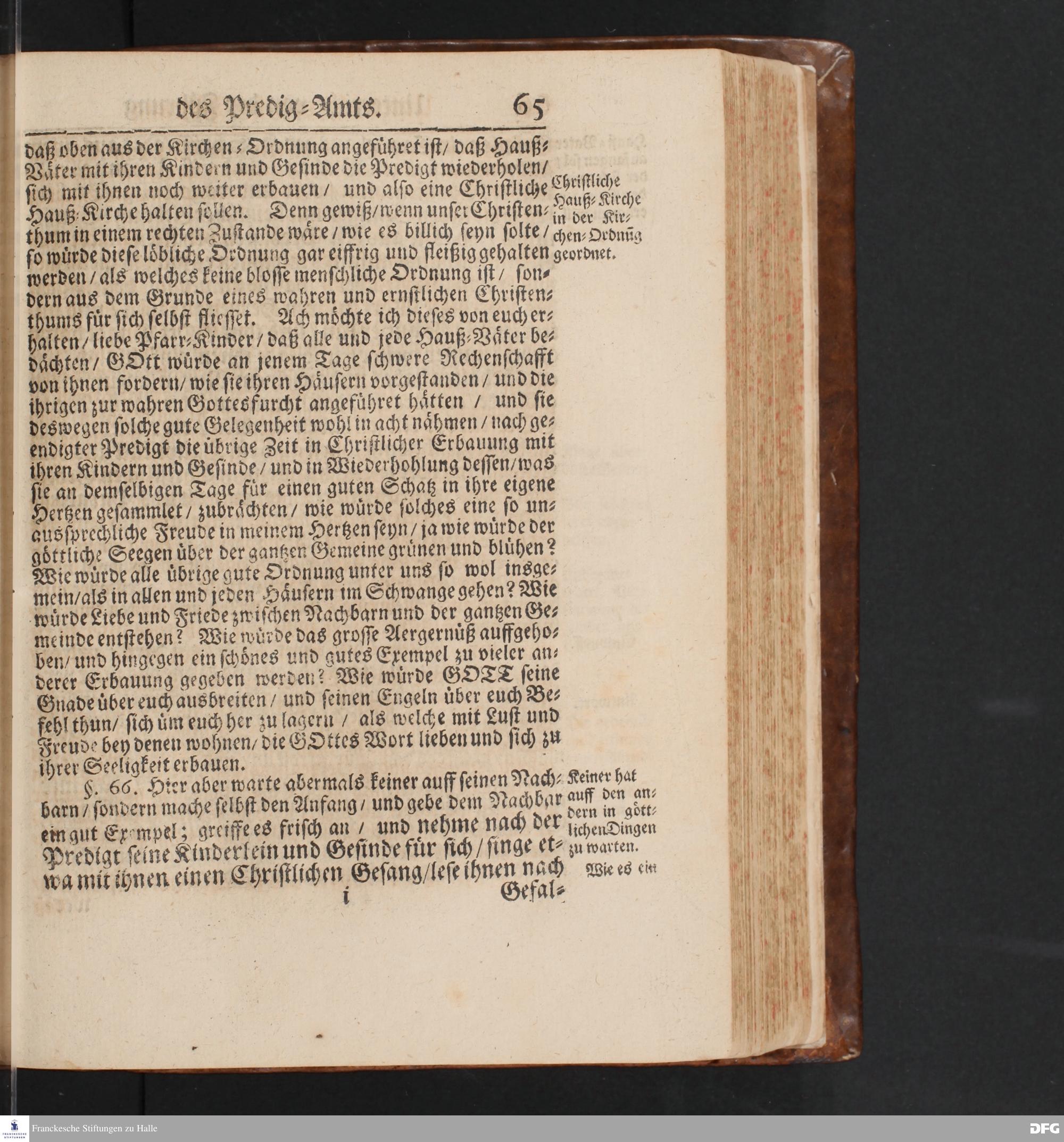 Einfältiger Unterricht Von der Führung des Predig=Amts Und dessen heilsamer Anwendung an Seiten der Zuhörer / Die Heiligung der Sonn= Fest= Apostel= Buß=und Bet=Tage / wie auch der Fasten=Zeit / die Wiederholung der Predigten / Catechisation, Wochen=Predigten / Betstunden / und insgemein die Handlung des Göttlichen Worts betreffend / Ehedessen unter dem Titul Des Glauchischen Gedenck=Büchleins Auff den Zustand Der Gemeinde zu Glauche an Halle / Wie sich derselbe Anno 1693.befunden / gerichtet von August Hermann Francken / S.Theol.Prof.Ord.& Past.Glauch.
