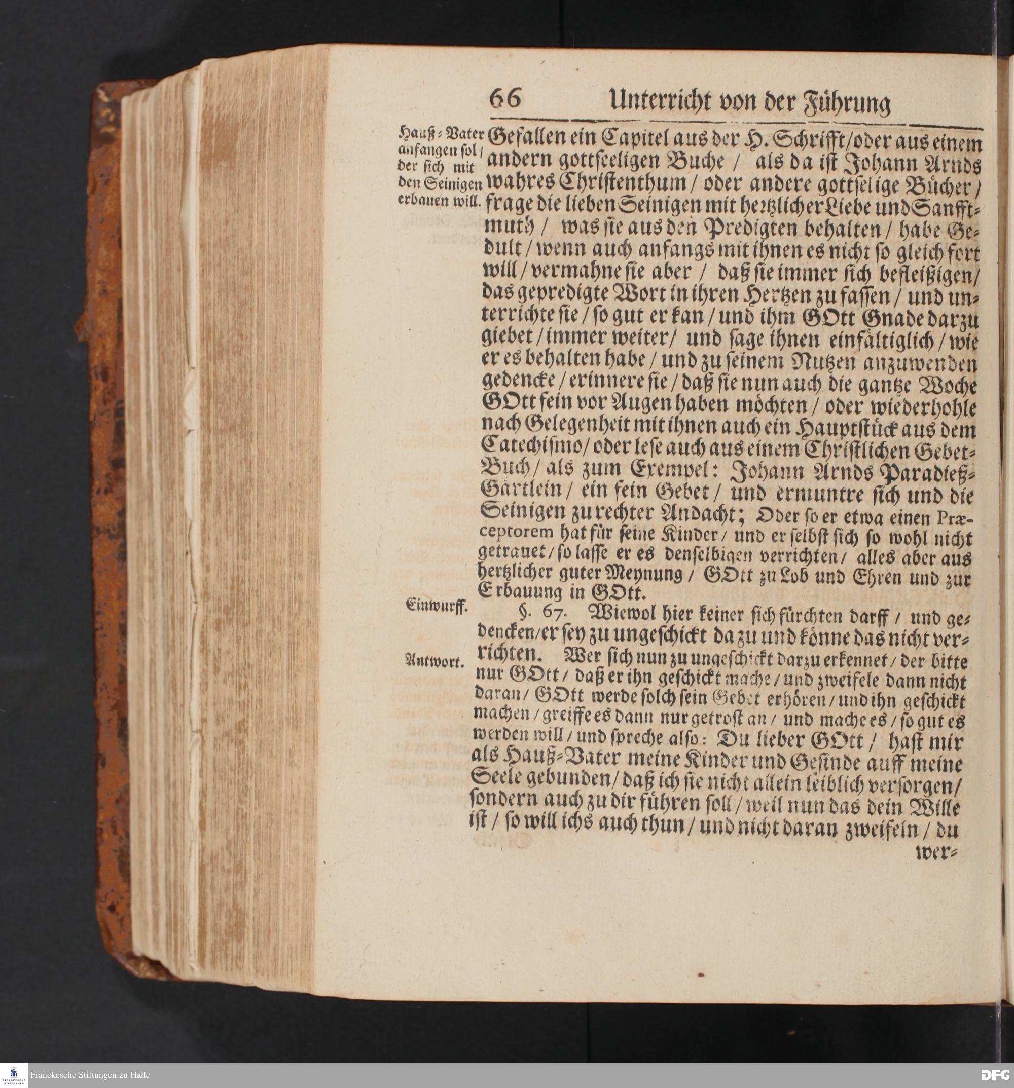 Einfältiger Unterricht Von der Führung des Predig=Amts Und dessen heilsamer Anwendung an Seiten der Zuhörer / Die Heiligung der Sonn= Fest= Apostel= Buß=und Bet=Tage / wie auch der Fasten=Zeit / die Wiederholung der Predigten / Catechisation, Wochen=Predigten / Betstunden / und insgemein die Handlung des Göttlichen Worts betreffend / Ehedessen unter dem Titul Des Glauchischen Gedenck=Büchleins Auff den Zustand Der Gemeinde zu Glauche an Halle / Wie sich derselbe Anno 1693.befunden / gerichtet von August Hermann Francken / S.Theol.Prof.Ord.& Past.Glauch.