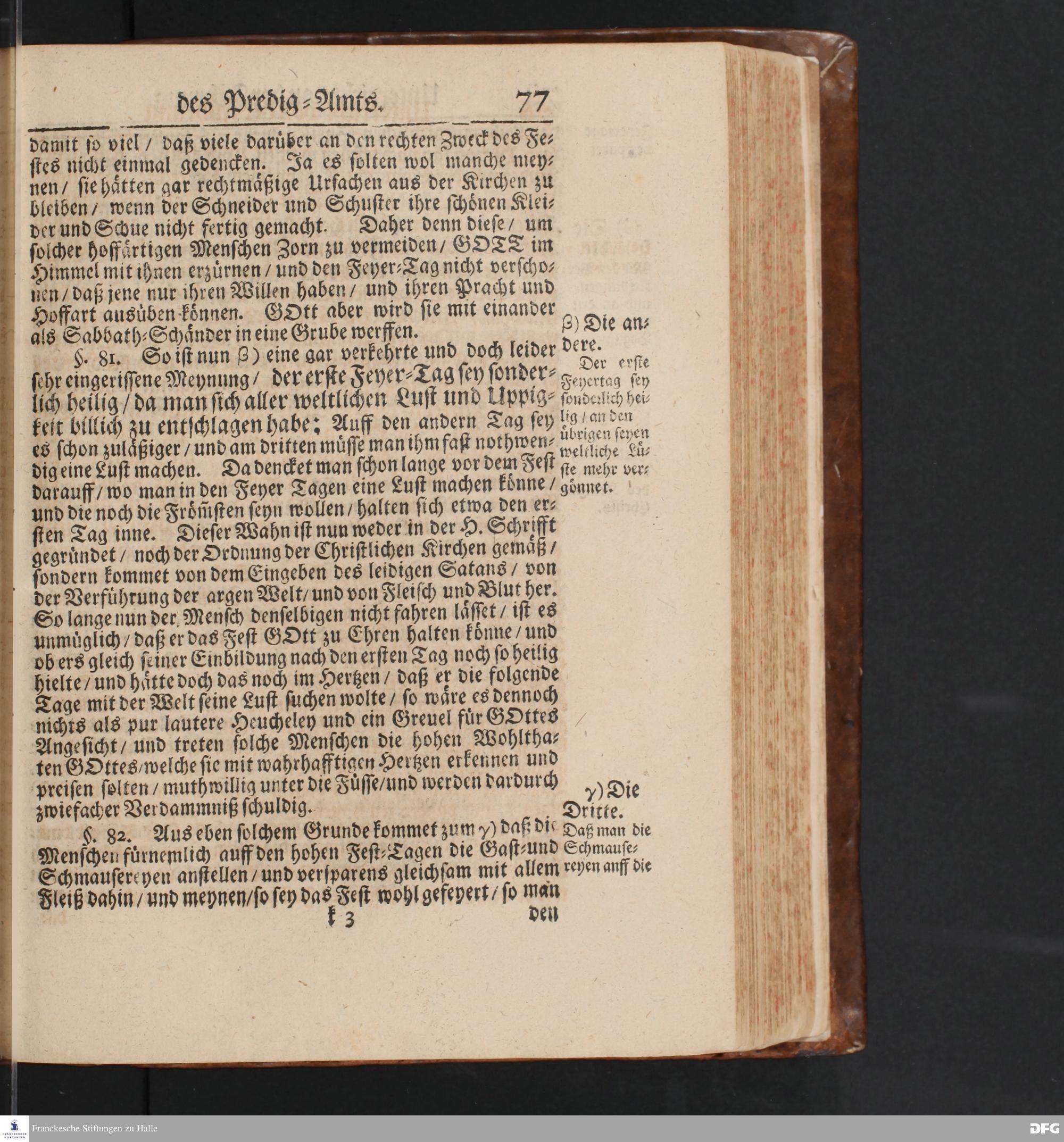 Einfältiger Unterricht Von der Führung des Predig=Amts Und dessen heilsamer Anwendung an Seiten der Zuhörer / Die Heiligung der Sonn= Fest= Apostel= Buß=und Bet=Tage / wie auch der Fasten=Zeit / die Wiederholung der Predigten / Catechisation, Wochen=Predigten / Betstunden / und insgemein die Handlung des Göttlichen Worts betreffend / Ehedessen unter dem Titul Des Glauchischen Gedenck=Büchleins Auff den Zustand Der Gemeinde zu Glauche an Halle / Wie sich derselbe Anno 1693.befunden / gerichtet von August Hermann Francken / S.Theol.Prof.Ord.& Past.Glauch.