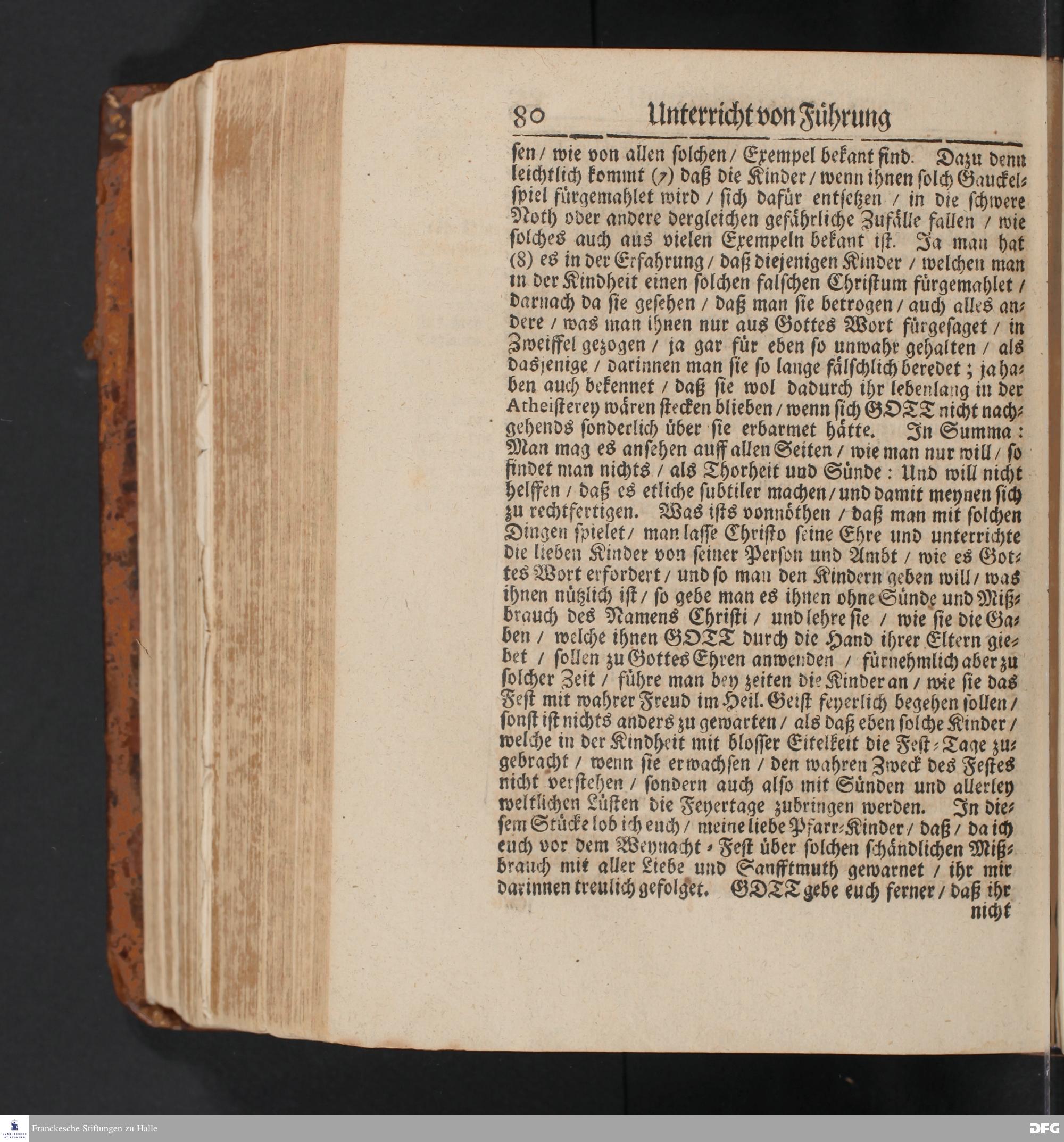 Einfältiger Unterricht Von der Führung des Predig=Amts Und dessen heilsamer Anwendung an Seiten der Zuhörer / Die Heiligung der Sonn= Fest= Apostel= Buß=und Bet=Tage / wie auch der Fasten=Zeit / die Wiederholung der Predigten / Catechisation, Wochen=Predigten / Betstunden / und insgemein die Handlung des Göttlichen Worts betreffend / Ehedessen unter dem Titul Des Glauchischen Gedenck=Büchleins Auff den Zustand Der Gemeinde zu Glauche an Halle / Wie sich derselbe Anno 1693.befunden / gerichtet von August Hermann Francken / S.Theol.Prof.Ord.& Past.Glauch.