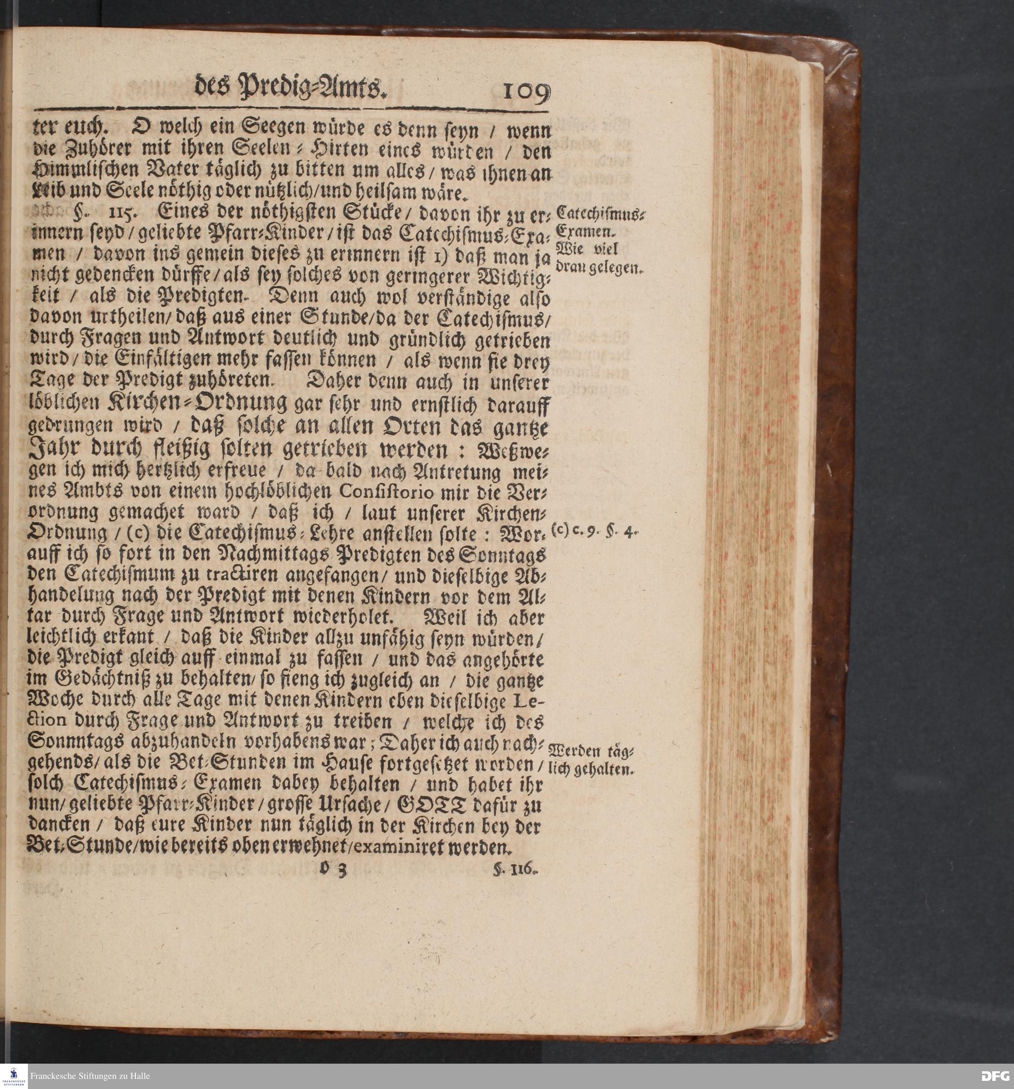 Einfältiger Unterricht Von der Führung des Predig=Amts Und dessen heilsamer Anwendung an Seiten der Zuhörer / Die Heiligung der Sonn= Fest= Apostel= Buß=und Bet=Tage / wie auch der Fasten=Zeit / die Wiederholung der Predigten / Catechisation, Wochen=Predigten / Betstunden / und insgemein die Handlung des Göttlichen Worts betreffend / Ehedessen unter dem Titul Des Glauchischen Gedenck=Büchleins Auff den Zustand Der Gemeinde zu Glauche an Halle / Wie sich derselbe Anno 1693.befunden / gerichtet von August Hermann Francken / S.Theol.Prof.Ord.& Past.Glauch.