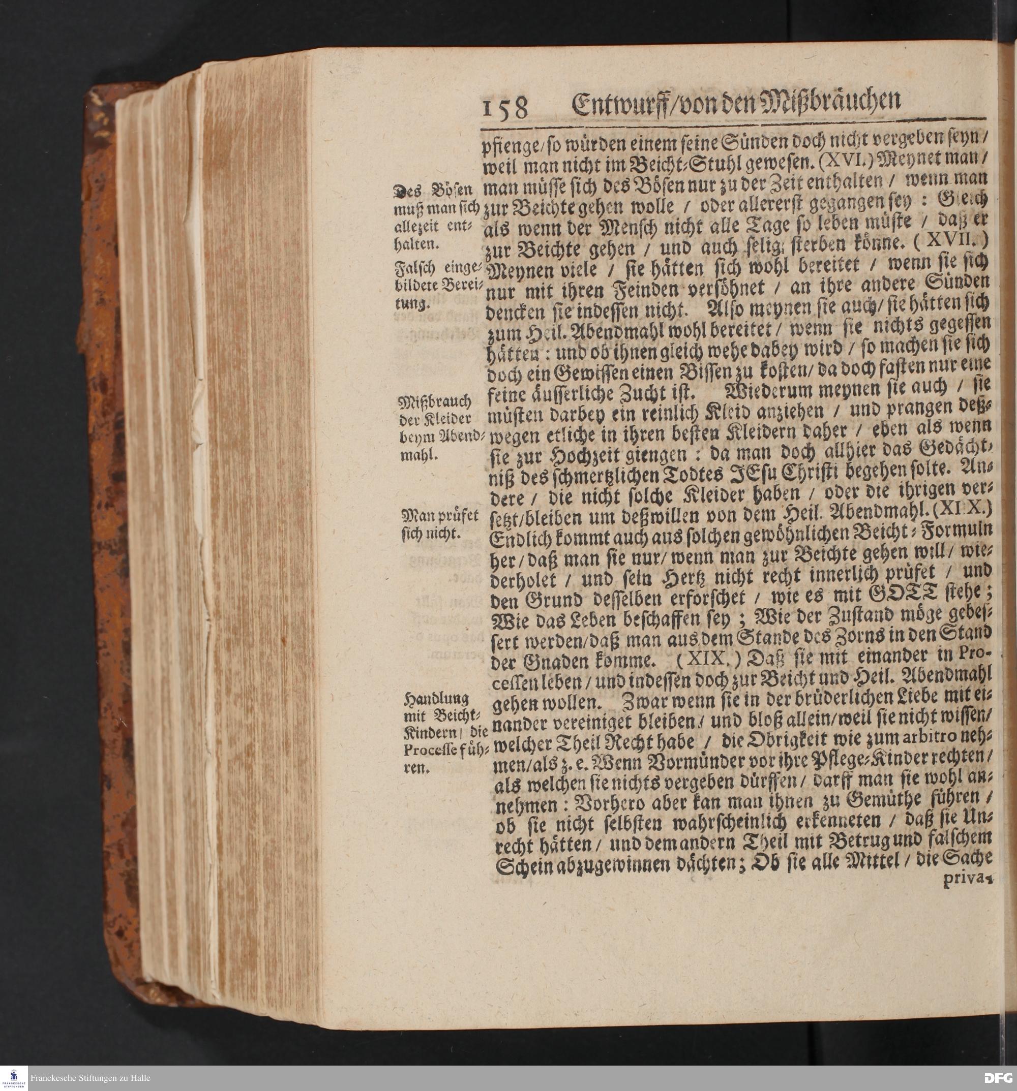 Kurtzer und Einfältiger Entwurff / von den Mißbräuchen des Beicht=Stuhls