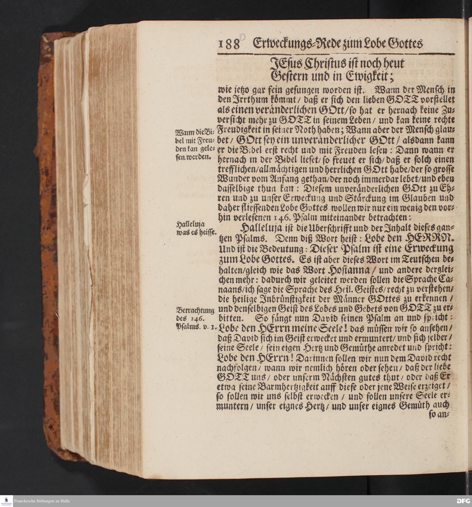 August Hermann Franckens/ S.S. Theol. P.P. Ord. & Past. Glauch. Erweckungs=Rede Zum Lobe Gottes und zum Vertrauen auff Gott / In dem neu=angelegten Wäysen=Hause zu Glaucha an Halle gehalten. Den 29. April 1700