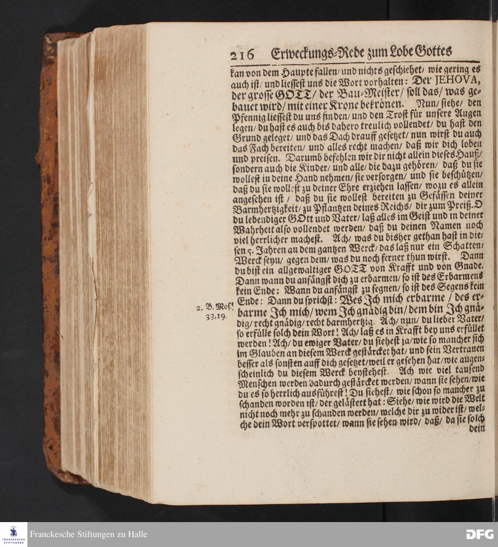 August Hermann Franckens/ S.S. Theol. P.P. Ord. & Past. Glauch. Erweckungs=Rede Zum Lobe Gottes und zum Vertrauen auff Gott / In dem neu=angelegten Wäysen=Hause zu Glaucha an Halle gehalten. Den 29. April 1700