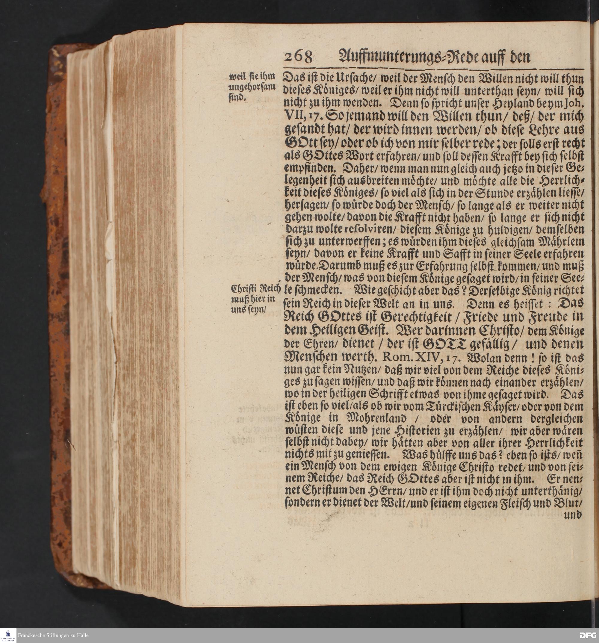 Ermahnung / und Auffmunterungs=Rede So auff den Krönungs=Tag Sr. Königl. Majestät Friederichs Königs in Preußen / etc. etc. etc. Nemlich den 18. Jan. 1701. Im Wäysen-Hause zu Glaucha an Halle gehalten worden