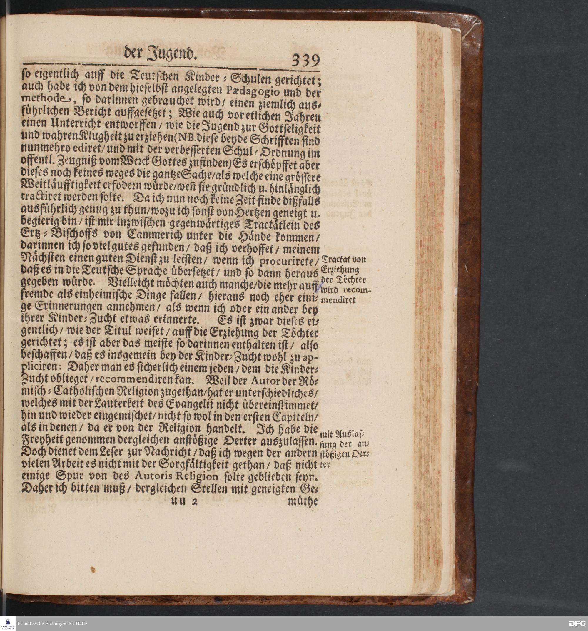 Von der Erziehung der Jugend / ehemals abgehandelt in einer Vorrede über Fenelons Tractätlein von der Erziehung der Töchter