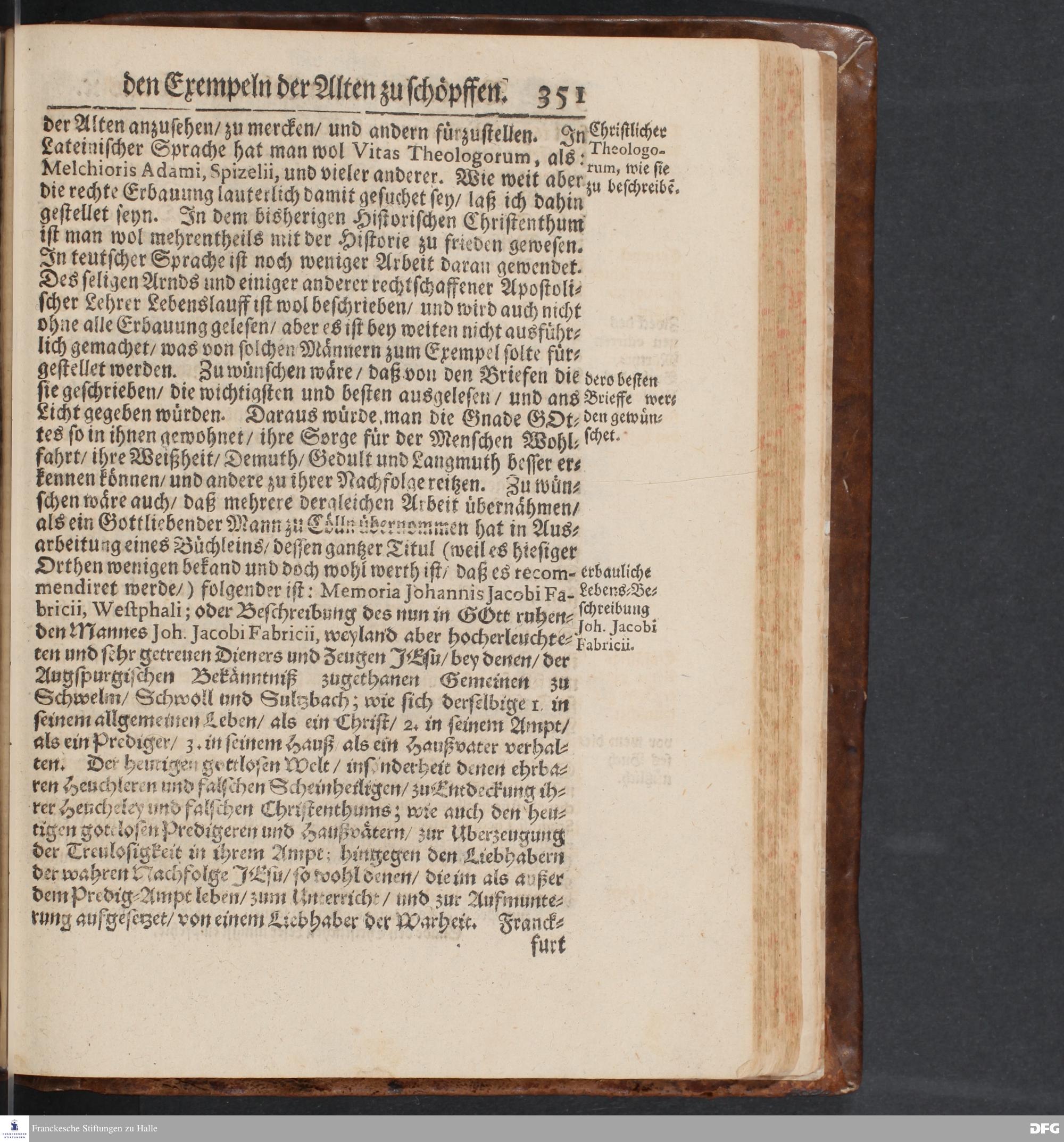 Von der herrlichen Erbauung / so aus den Exempeln der Alten zu schöpffen / vormals abgehandelt in einer Vorrede über D. Wellers neu edirtes Marter=Buch