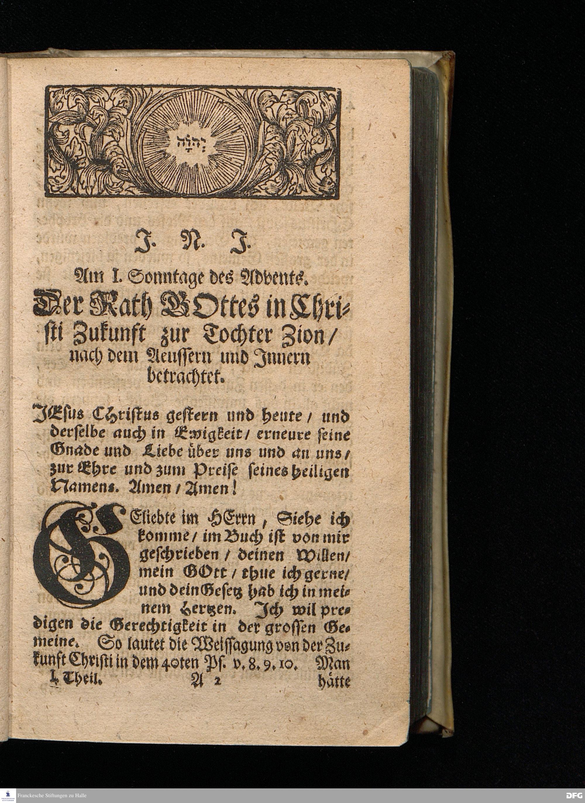 August Hermann Franckens / S.Theol.Prof.& Past. zu S.Ulrich, und des Gymnasii Scholarchæ, Kurtze Sonn= und Fest=Tags=Predigten / Darinnen Vornemlich zum wahren / lebendigen / Kraft=vollen und in guten Früchten sich beweisenden Glauben, die nöthige Aufweckung und Anweisung gegeben wird. Die andere EDITION, mit einer neuen Vorrede und einem Register versehen. HALLE, in Verlegung des Wäysen=Hause MDCCXVIII.
