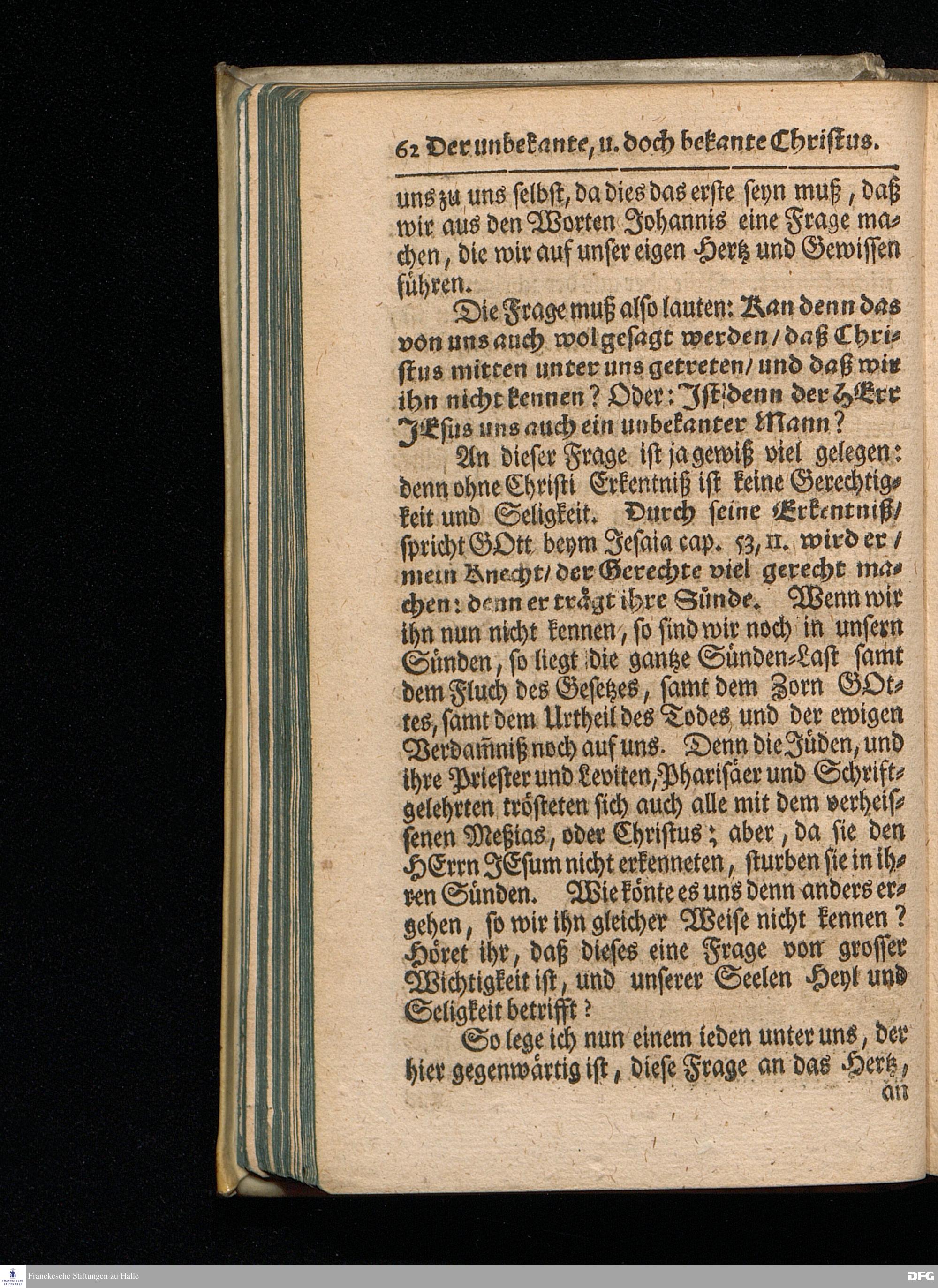 August Hermann Franckens / S.Theol.Prof.& Past. zu S.Ulrich, und des Gymnasii Scholarchæ, Kurtze Sonn= und Fest=Tags=Predigten / Darinnen Vornemlich zum wahren / lebendigen / Kraft=vollen und in guten Früchten sich beweisenden Glauben, die nöthige Aufweckung und Anweisung gegeben wird. Die andere EDITION, mit einer neuen Vorrede und einem Register versehen. HALLE, in Verlegung des Wäysen=Hause MDCCXVIII.