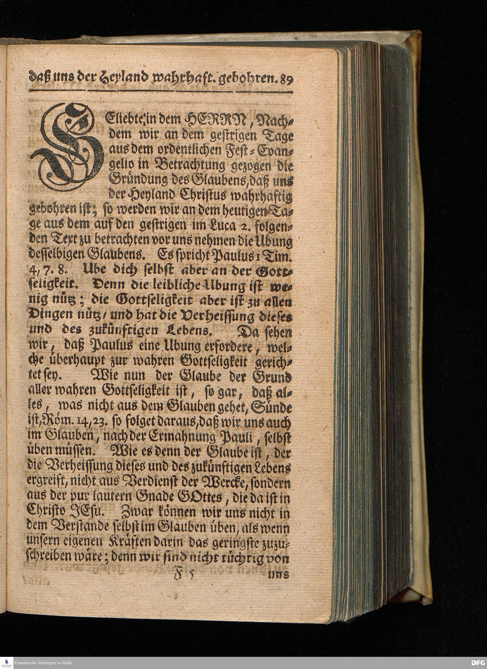 August Hermann Franckens / S.Theol.Prof.& Past. zu S.Ulrich, und des Gymnasii Scholarchæ, Kurtze Sonn= und Fest=Tags=Predigten / Darinnen Vornemlich zum wahren / lebendigen / Kraft=vollen und in guten Früchten sich beweisenden Glauben, die nöthige Aufweckung und Anweisung gegeben wird. Die andere EDITION, mit einer neuen Vorrede und einem Register versehen. HALLE, in Verlegung des Wäysen=Hause MDCCXVIII.