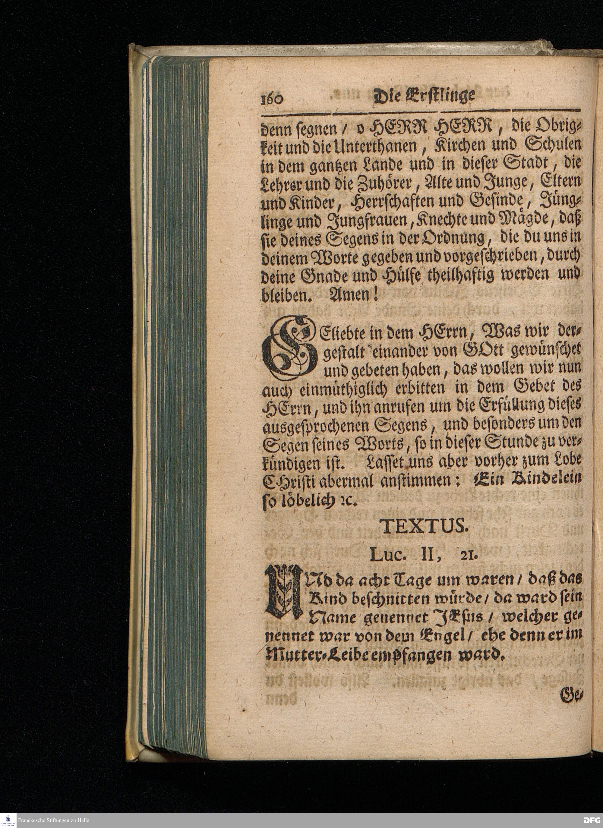 August Hermann Franckens / S.Theol.Prof.& Past. zu S.Ulrich, und des Gymnasii Scholarchæ, Kurtze Sonn= und Fest=Tags=Predigten / Darinnen Vornemlich zum wahren / lebendigen / Kraft=vollen und in guten Früchten sich beweisenden Glauben, die nöthige Aufweckung und Anweisung gegeben wird. Die andere EDITION, mit einer neuen Vorrede und einem Register versehen. HALLE, in Verlegung des Wäysen=Hause MDCCXVIII.