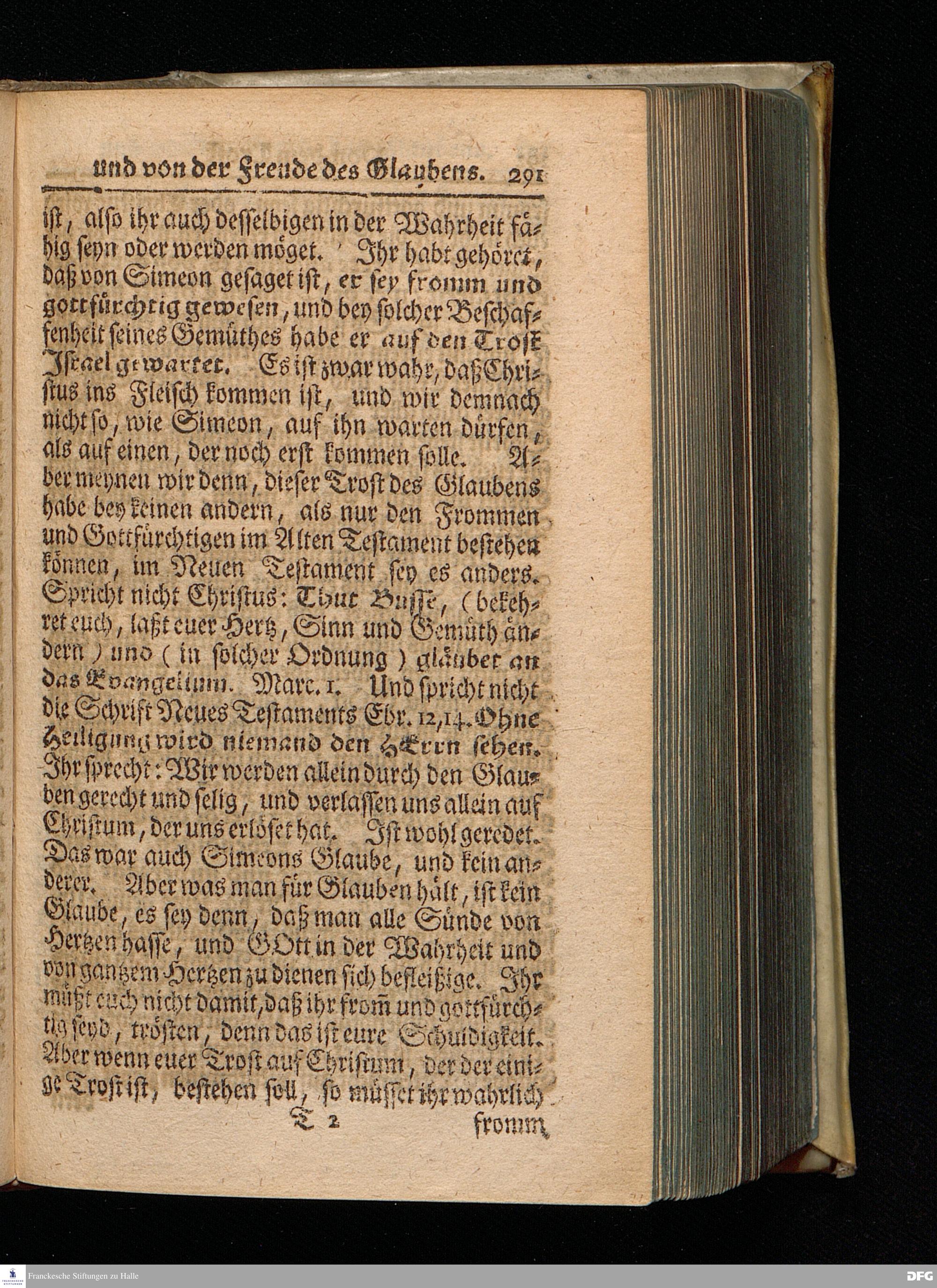 August Hermann Franckens / S.Theol.Prof.& Past. zu S.Ulrich, und des Gymnasii Scholarchæ, Kurtze Sonn= und Fest=Tags=Predigten / Darinnen Vornemlich zum wahren / lebendigen / Kraft=vollen und in guten Früchten sich beweisenden Glauben, die nöthige Aufweckung und Anweisung gegeben wird. Die andere EDITION, mit einer neuen Vorrede und einem Register versehen. HALLE, in Verlegung des Wäysen=Hause MDCCXVIII.