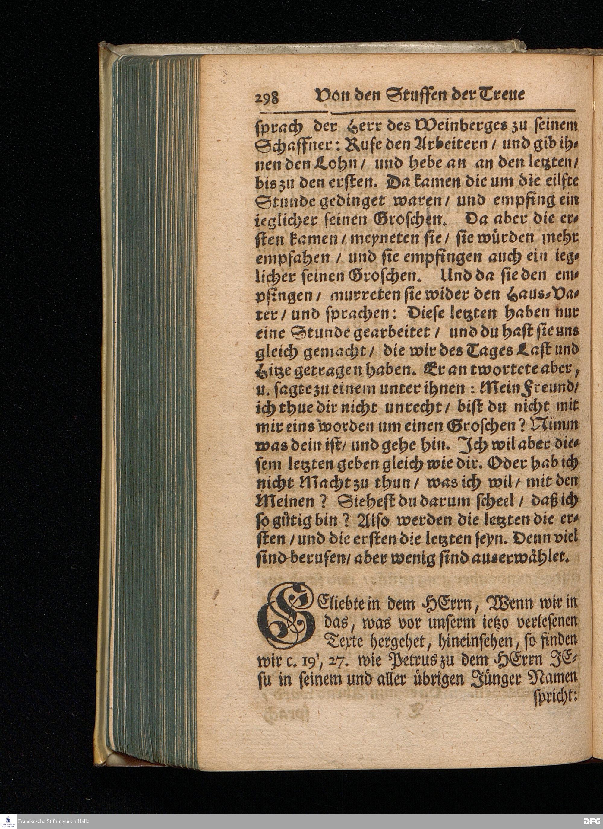 August Hermann Franckens / S.Theol.Prof.& Past. zu S.Ulrich, und des Gymnasii Scholarchæ, Kurtze Sonn= und Fest=Tags=Predigten / Darinnen Vornemlich zum wahren / lebendigen / Kraft=vollen und in guten Früchten sich beweisenden Glauben, die nöthige Aufweckung und Anweisung gegeben wird. Die andere EDITION, mit einer neuen Vorrede und einem Register versehen. HALLE, in Verlegung des Wäysen=Hause MDCCXVIII.