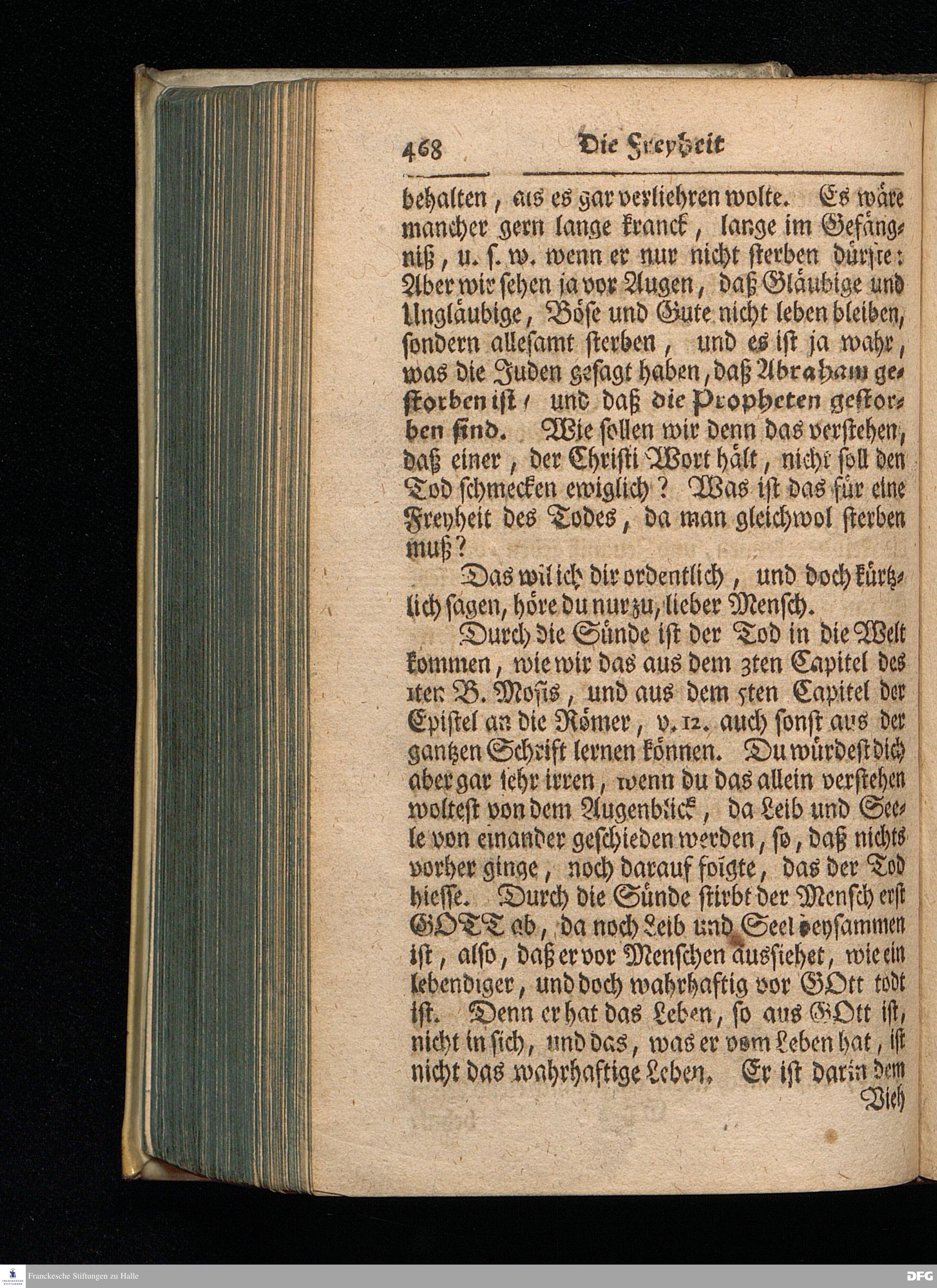 August Hermann Franckens / S.Theol.Prof.& Past. zu S.Ulrich, und des Gymnasii Scholarchæ, Kurtze Sonn= und Fest=Tags=Predigten / Darinnen Vornemlich zum wahren / lebendigen / Kraft=vollen und in guten Früchten sich beweisenden Glauben, die nöthige Aufweckung und Anweisung gegeben wird. Die andere EDITION, mit einer neuen Vorrede und einem Register versehen. HALLE, in Verlegung des Wäysen=Hause MDCCXVIII.