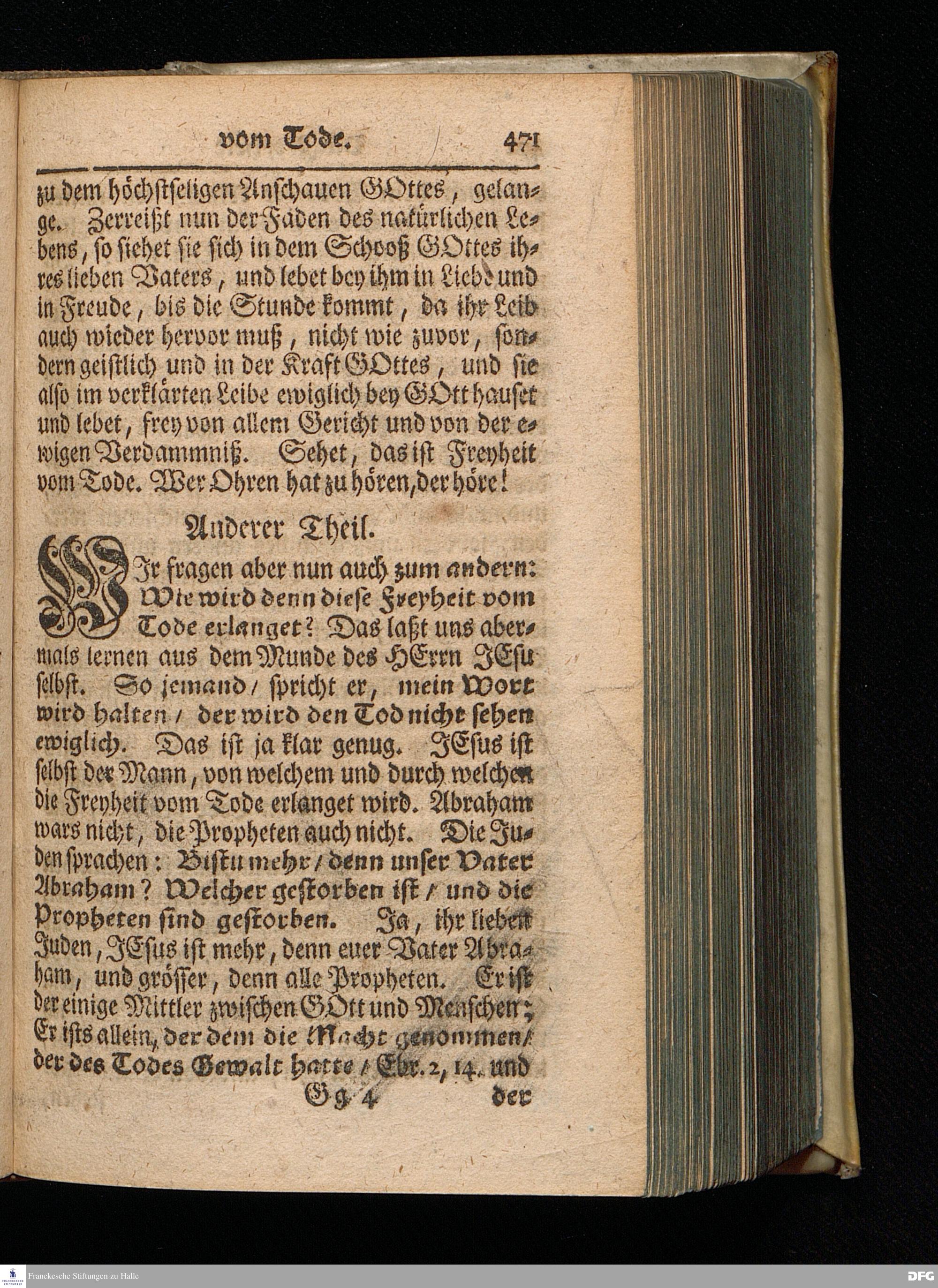 August Hermann Franckens / S.Theol.Prof.& Past. zu S.Ulrich, und des Gymnasii Scholarchæ, Kurtze Sonn= und Fest=Tags=Predigten / Darinnen Vornemlich zum wahren / lebendigen / Kraft=vollen und in guten Früchten sich beweisenden Glauben, die nöthige Aufweckung und Anweisung gegeben wird. Die andere EDITION, mit einer neuen Vorrede und einem Register versehen. HALLE, in Verlegung des Wäysen=Hause MDCCXVIII.