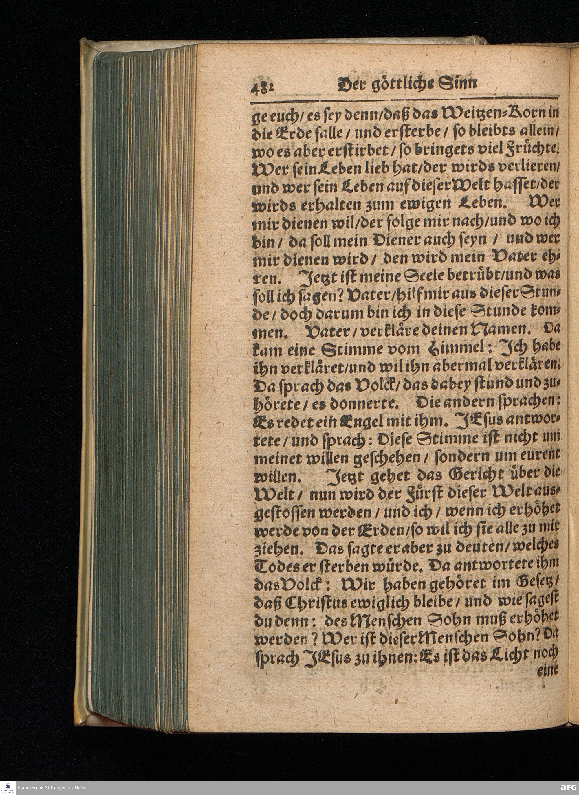August Hermann Franckens / S.Theol.Prof.& Past. zu S.Ulrich, und des Gymnasii Scholarchæ, Kurtze Sonn= und Fest=Tags=Predigten / Darinnen Vornemlich zum wahren / lebendigen / Kraft=vollen und in guten Früchten sich beweisenden Glauben, die nöthige Aufweckung und Anweisung gegeben wird. Die andere EDITION, mit einer neuen Vorrede und einem Register versehen. HALLE, in Verlegung des Wäysen=Hause MDCCXVIII.