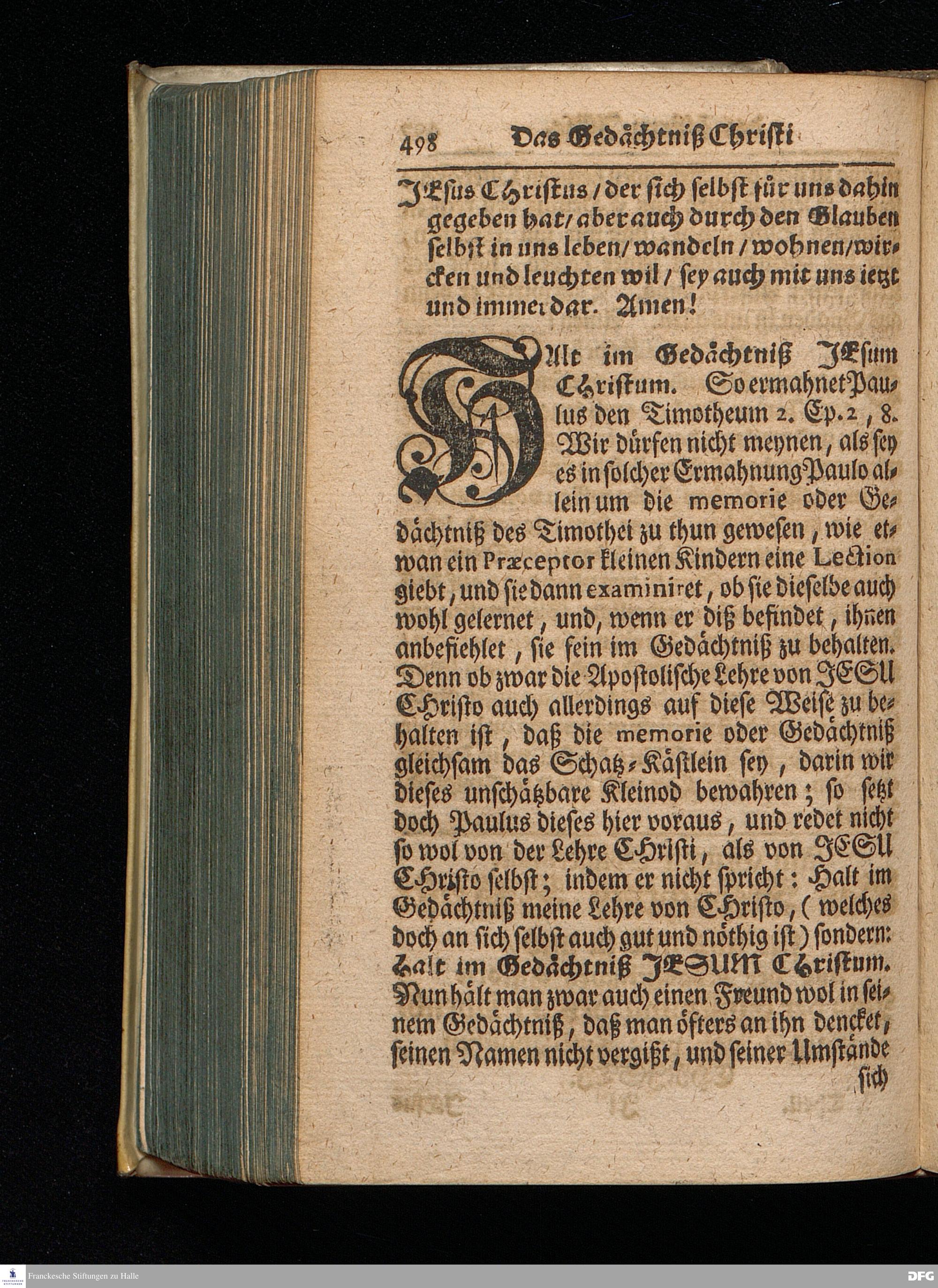 August Hermann Franckens / S.Theol.Prof.& Past. zu S.Ulrich, und des Gymnasii Scholarchæ, Kurtze Sonn= und Fest=Tags=Predigten / Darinnen Vornemlich zum wahren / lebendigen / Kraft=vollen und in guten Früchten sich beweisenden Glauben, die nöthige Aufweckung und Anweisung gegeben wird. Die andere EDITION, mit einer neuen Vorrede und einem Register versehen. HALLE, in Verlegung des Wäysen=Hause MDCCXVIII.