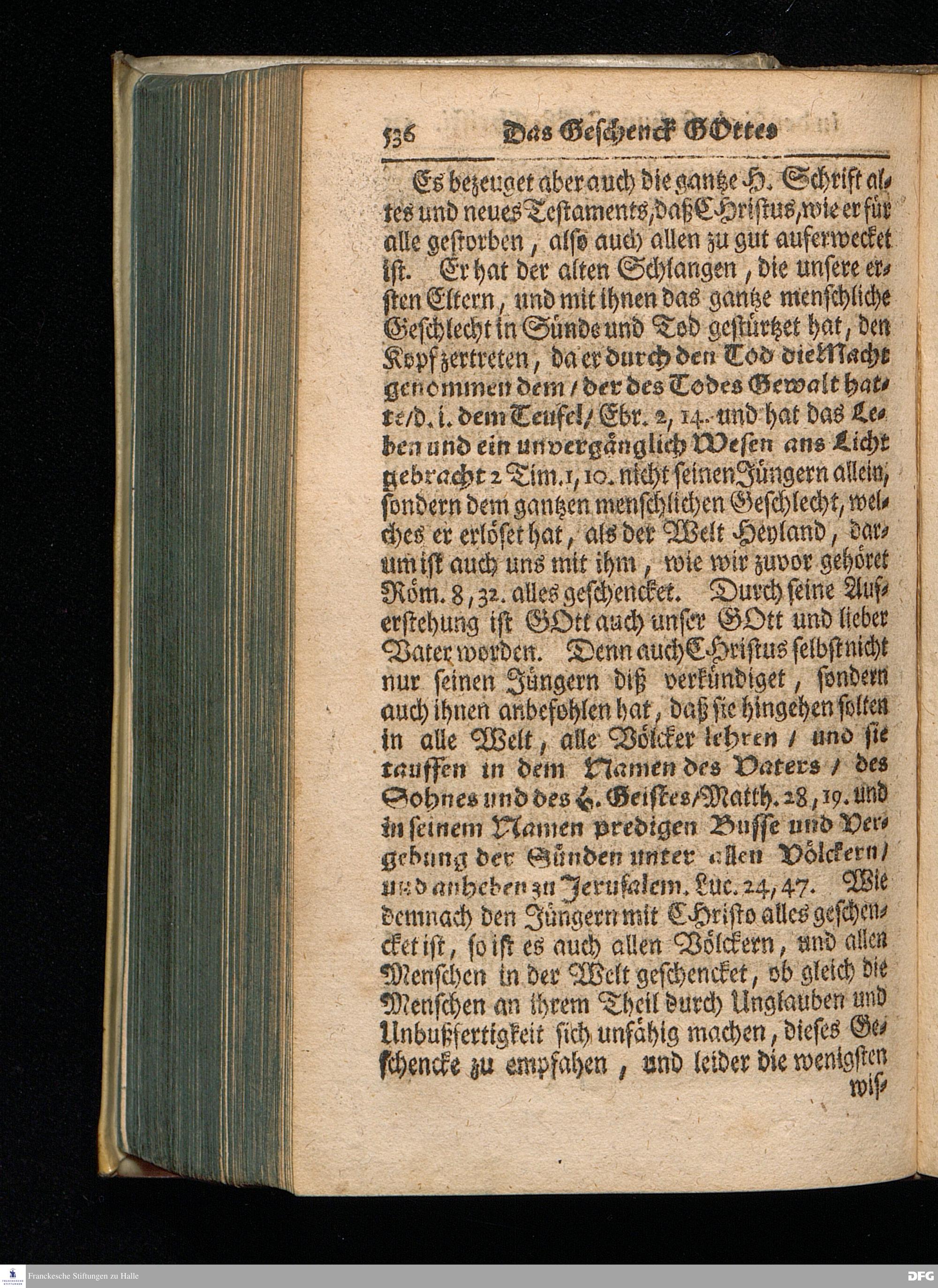 August Hermann Franckens / S.Theol.Prof.& Past. zu S.Ulrich, und des Gymnasii Scholarchæ, Kurtze Sonn= und Fest=Tags=Predigten / Darinnen Vornemlich zum wahren / lebendigen / Kraft=vollen und in guten Früchten sich beweisenden Glauben, die nöthige Aufweckung und Anweisung gegeben wird. Die andere EDITION, mit einer neuen Vorrede und einem Register versehen. HALLE, in Verlegung des Wäysen=Hause MDCCXVIII.