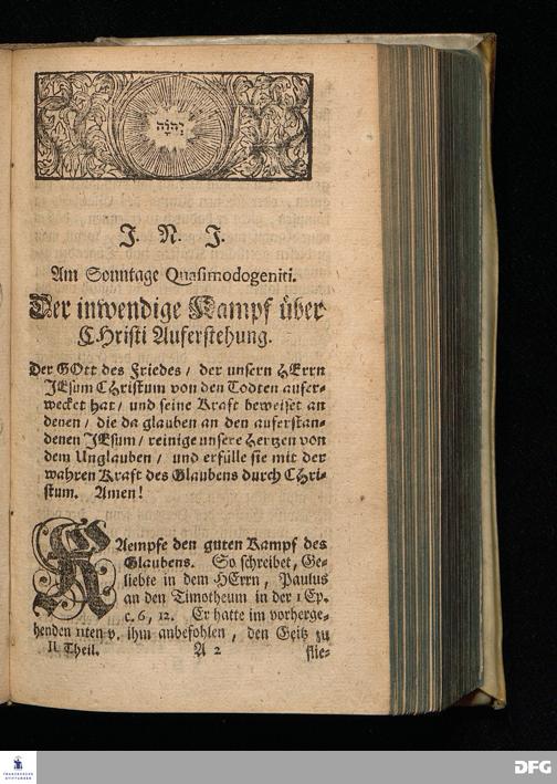 August Hermann Franckens / S.Theol.Prof.& Past. zu S.Ulrich, und des Gymnasii Scholarchæ, Kurtze Sonn= und Fest=Tags=Predigten / Darinnen Vornemlich zum wahren / lebendigen / Kraft=vollen und in guten Früchten sich beweisenden Glauben, die nöthige Aufweckung und Anweisung gegeben wird. Die andere EDITION, mit einer neuen Vorrede und einem Register versehen. HALLE, in Verlegung des Wäysen=Hause MDCCXVIII.
